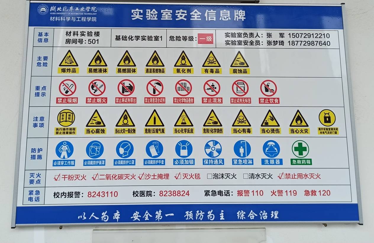 本网讯(文/图 吴少军 徐正凯)新学期学校实验室安全环境有了新的变化,同学们看到每个实验室门前都有了“量身定制”的安全“名片”,实验室内部各类重要危险源也完善了安全警示标识。据了解,为进一步强化实验室安全意识,提供一个更安全的实验环境,有关单位经过暑期紧张工作,设计制作了实验室安全信息牌和各类安全警示标识300余块,部分实验室还对安全设施进行了改造,实验室安全环境进一步提升。
