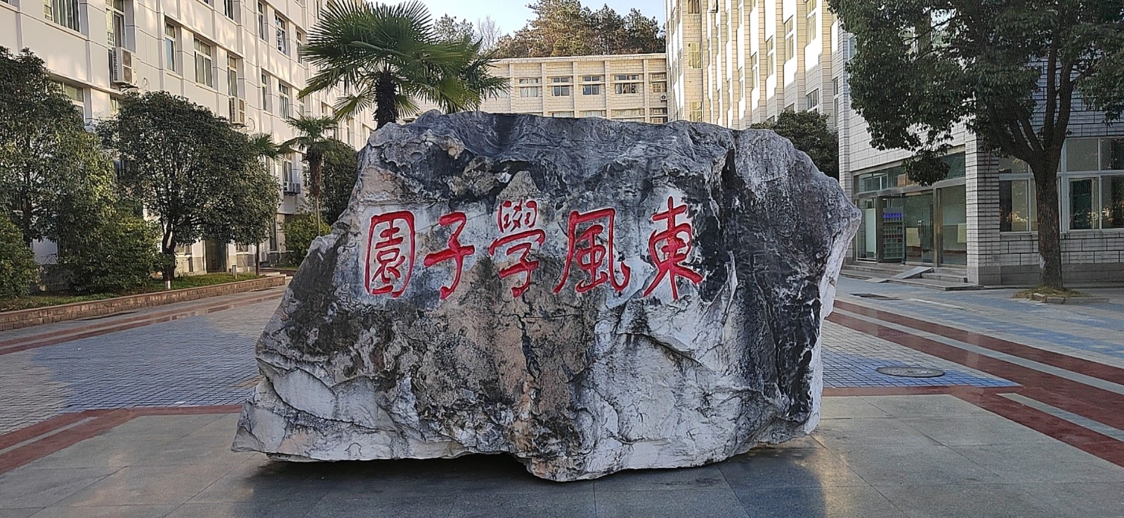 活动期间,艺术与设计学院十余位学子手执彩色画笔,描红校园景观石等十余块,以专业所学绘“红色初心”。
