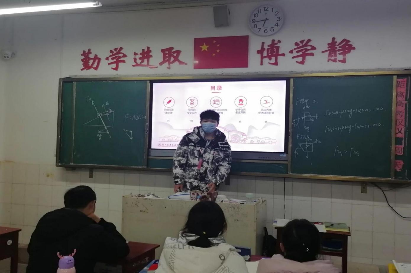 本网讯(文/吴媛媛)为进一步加大学校招生宣传工作力度,增进学校与生源高中的了解与沟通,提升学生的理论认知能力和实践能力,根据学校招生工作及寒假社会实践总体安排,在寒假期间选派部分优秀学生,利用返乡的机会在其高中母校开展“汽车梦、汽院情”招生宣传活动,各二级学院积极动员优秀学子报名参与,招生与就业处于12月30日对参与返乡学子开展培训及测验,最终选派60余人分别前往10余个省份,后因疫情防控需要部分学生未能进入校园开展该项工作,现将部分学子活动开展情况展示如下: