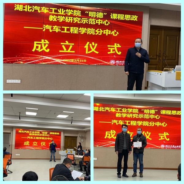 本网讯(文/曾娇)3月21日下午,“明德”课程思政教学研究示范中心汽车工程学院分中心成立仪式在教师发展中心1305智慧教室举行。教务处李建副处长、“明德”课程思政教学研究示范中心副主任暨马克思主义学院副院长黄永昌、成继平、教学督导常治斌教授、教师发展中心副主任张琴出席成立仪式,汽车工程学院全体教职工及部分其他学院教师参加。仪式由汽车工程学院院长助理周红妮主持。