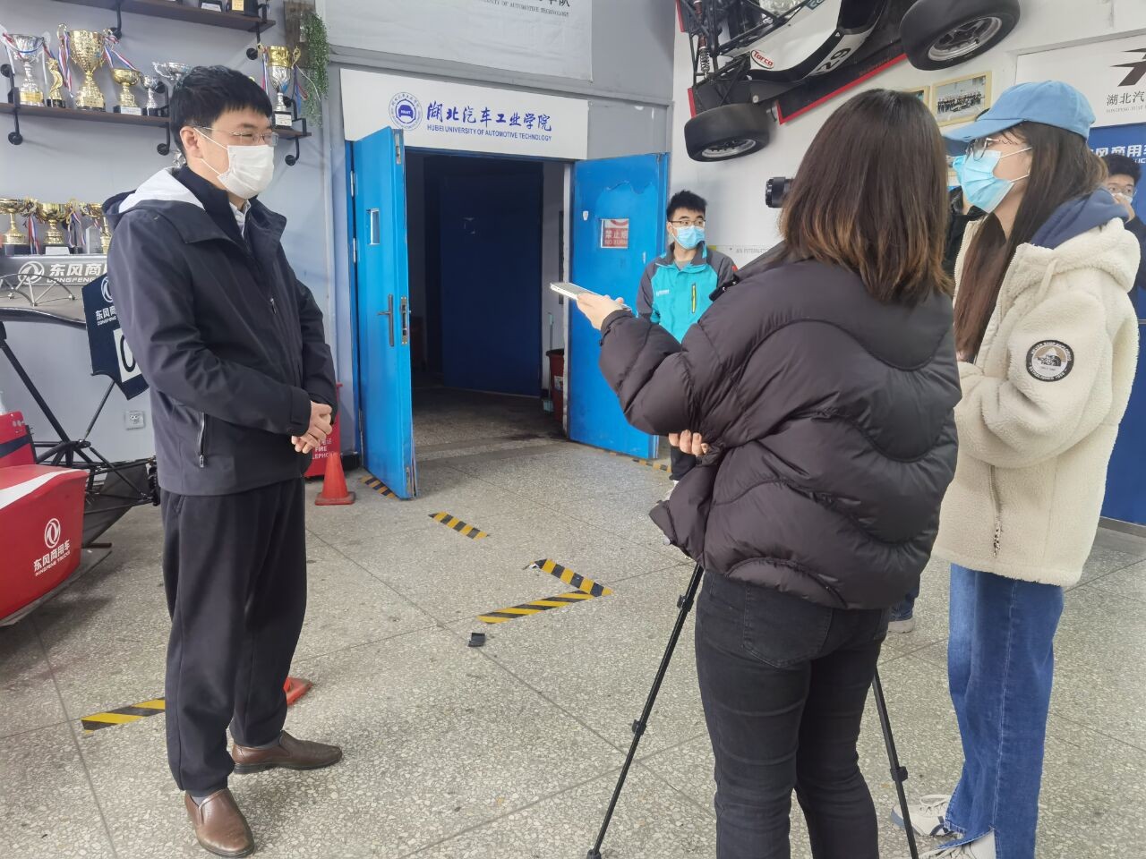在汽车工程学院副院长刘成武、车队指导教师金家琛的陪同下,两位记者走进车队工作室,通过与车队成员的深度交流,全面了解了车队的历史及获得的荣誉奖项,用镜头记录下了队员们的工作场景。在专题采访环节,车队队长杨建宇等同学向记者全面介绍了车队成员因热爱而拼搏的汽车故事,并从学生视角介绍了学校对车队的重视和支持;学校创新创业学院缪勇院长以方程式赛车队为切入点,全面介绍了学校根植汽车产业、大力培养学生科技创新能力的办学特色以及近年来学校在大学生科技竞赛方面取得的成绩。