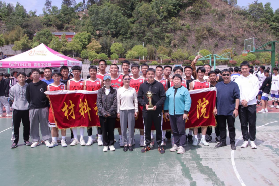 19日当天,“校庆杯”篮球赛颁奖典礼在篮球场举行。学工部副部长、团委副书记倪凰、机械工程学院分党委副书记周丹、电气与信息工程学院分党委副书记林飞飞、材料科学院与工程学院分党委副书记崔海英出席颁奖典礼并为获奖学院参赛队和个人颁奖。