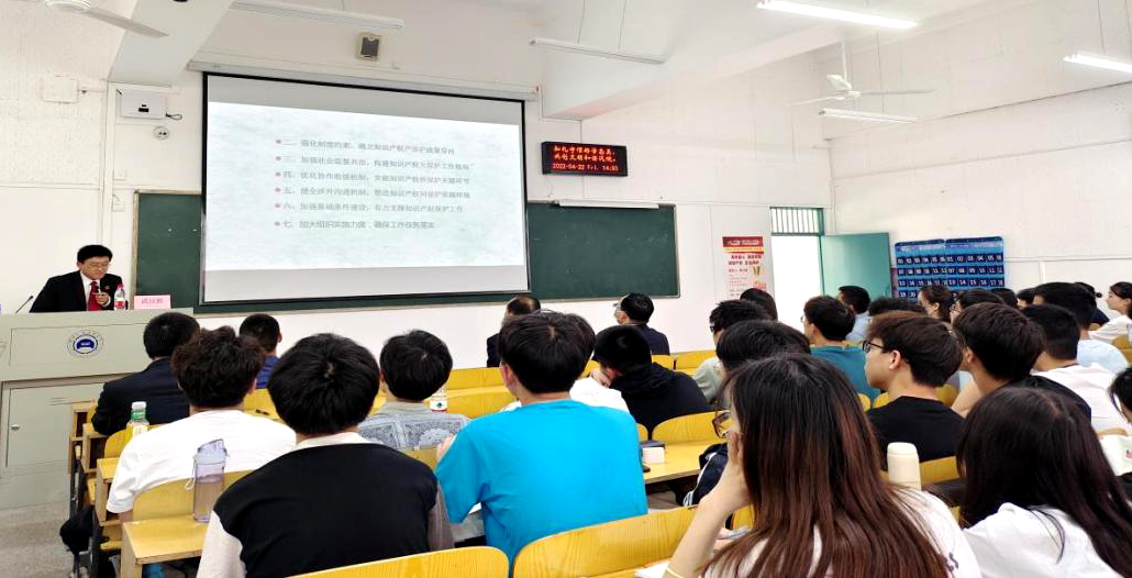 讲座伊始,黄永昌对十堰市中级人民法院知识产权审判庭法官们的到来表示欢迎,并向大家介绍了马克思主义学院湖北省知识产权培训(十堰)基地的成立与发展的历史。随后,武汉胜从知识产权保护政策、知识产权制度、知识产权新旧法对比、品牌保护成功与失策的案例、十堰市中级人民法院审理知识产权案例回顾等五个方面向同学们做了讲解。讲座结束后,十堰市中级人民法院知识产权审判庭的法官们在第五教学楼前小广场向广大师生现场宣传知识产权知识,发放宣传册并展示部分侵权假冒商品。十堰市市场监督管理局(知识产权局)的工作人员共同参与了现场宣传。