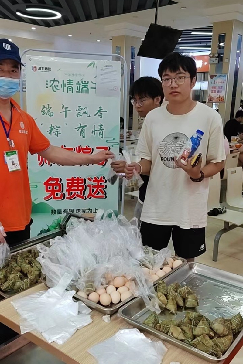 本网讯(文/余健)又是一年端午时,粽叶飘香情意浓。为了传承和弘扬中华传统民俗文化,6月3日,beat365开展端午节“赠粽子 送温暖”暖心行动,当日学校通过五个食堂免费给广大学生发放粽子和鸡蛋活动。