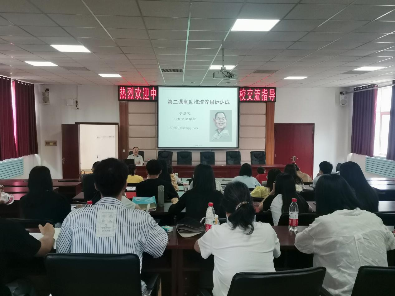 本网讯(文/王曼)为推进第二课堂课程体系建设,切实发挥第二课堂在思想引领和实践育人方面的作用,促进辅导员队伍专业化、职业化发展。6月10日上午,学生工作部在3425教室举办第七期辅导员系列培训。全体专职辅导员参加了活动。本次培训特邀山东交通学院李景芝教授担任主讲嘉宾。