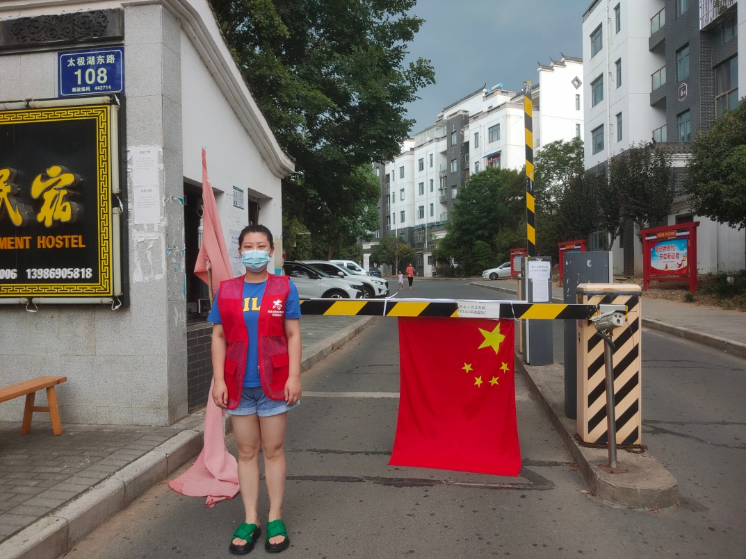 设计193潘玥积极参与疫情防控工作,在丹江口市上海花园(望江)社区参加疫情防控志愿服务,当好核酸检测劝导人员、小区门口值守人员、后勤保障人员。