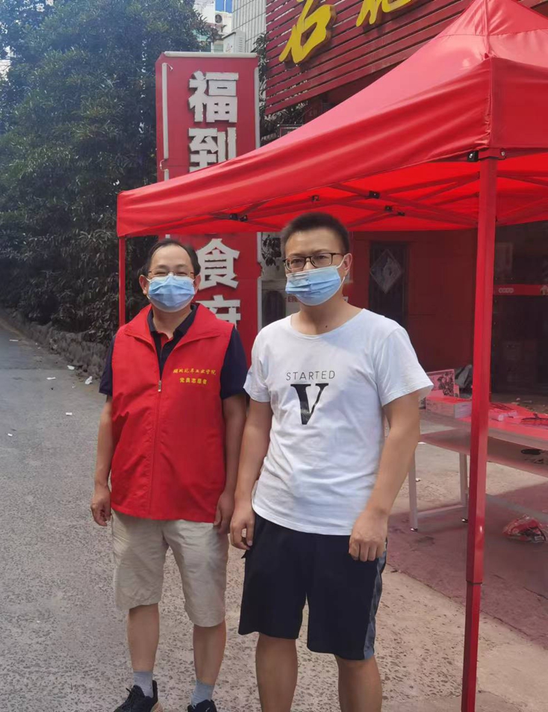 党员先锋做表率 在此次抗疫过程中,涌现出了一批以党员为先锋的志愿者服务队伍,他们顶着酷暑坚守在各个核酸检测点和防疫卡点,开展卡口值守、体温检测、核酸采样、排查登记等疫情防控工作。教工一支部书记张俊克服了一家老小无人照顾等重重困难,率先报名投入到疫情防控工作中。和张俊一样的还有教工二支部书记吴俊,他们第一时间组建了学院志愿服务工作群,带领教职工认真、高效完成学校部署的各项工作任务。为做好防疫工作后勤保障,他们还将自家蚊香、电扇、酒精等物品带到值守点供大家使用。学生支部书记李童一天24小时更是被安排的满当当,白天实时在线处理学院学工各类工作,同时还要指导孩子备战省运会青少年体育舞蹈比赛,中午和晚上十点钟之后又主动申请到所在社区承担志愿服务工作,并向所在社区提出合理化建议,有效减少了核酸检测人员扎堆和排队时间较长等问题。办公室主任鄢国祥在集中隔离期间无任何办公条件的情况下,依旧积极统筹学院疫情防控各项工作正常开展,做好学校各项数据统计工作。虽不能亲自到社区参加志愿服务,但一直在沟通、协调、动员教职工参加志愿服务工作,主动联系、关心被封控教职工的健康状况,实时掌握堰外教职工的动态。