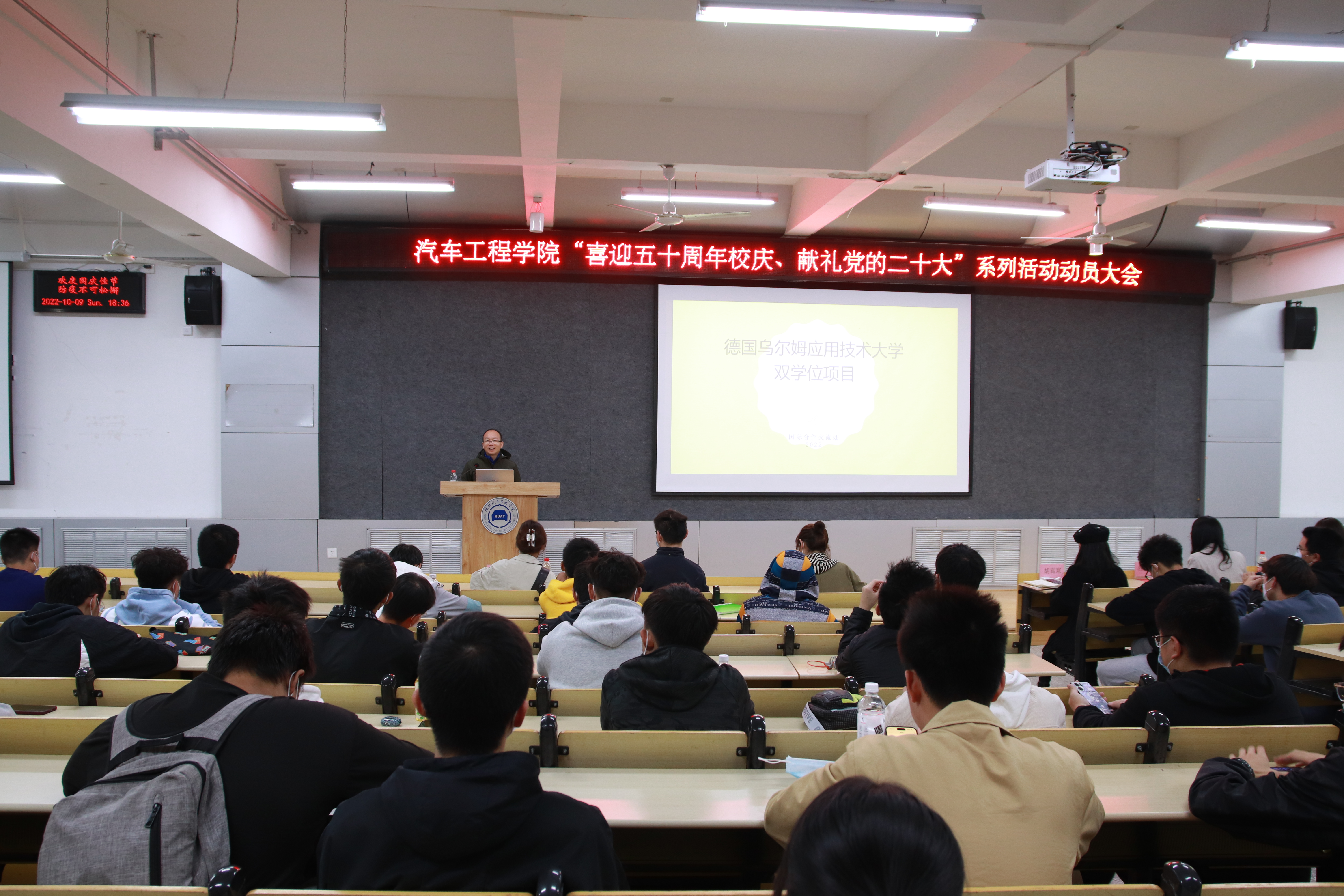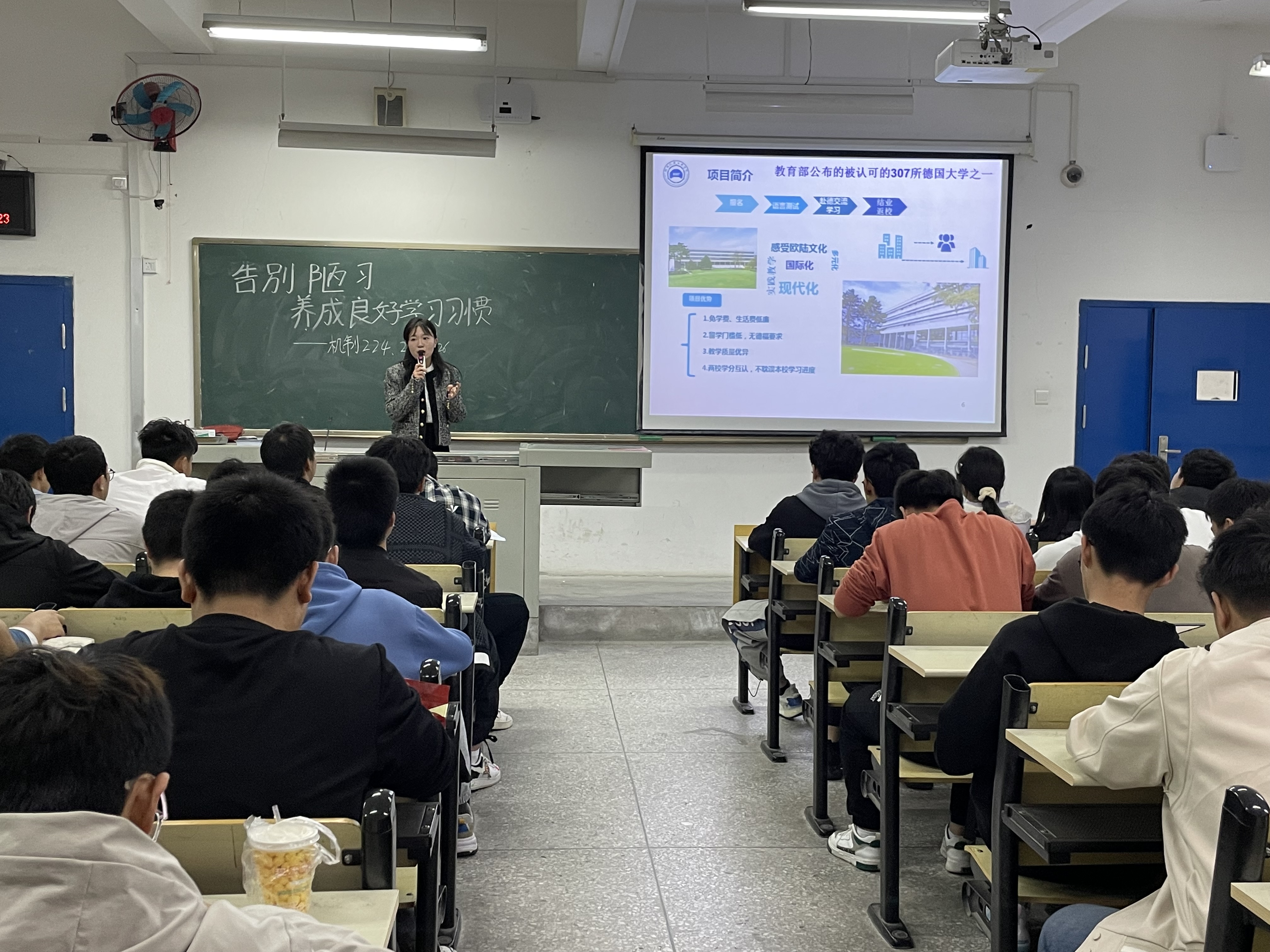 本网讯(文 张婷婷/图 张婷婷、张永红)10月9日晚,受相关二级学院邀请,国际合作交流处分别在6303、6305和6113教室为汽车工程学院和机械工程学院相关专业学生宣讲中德双学位项目。