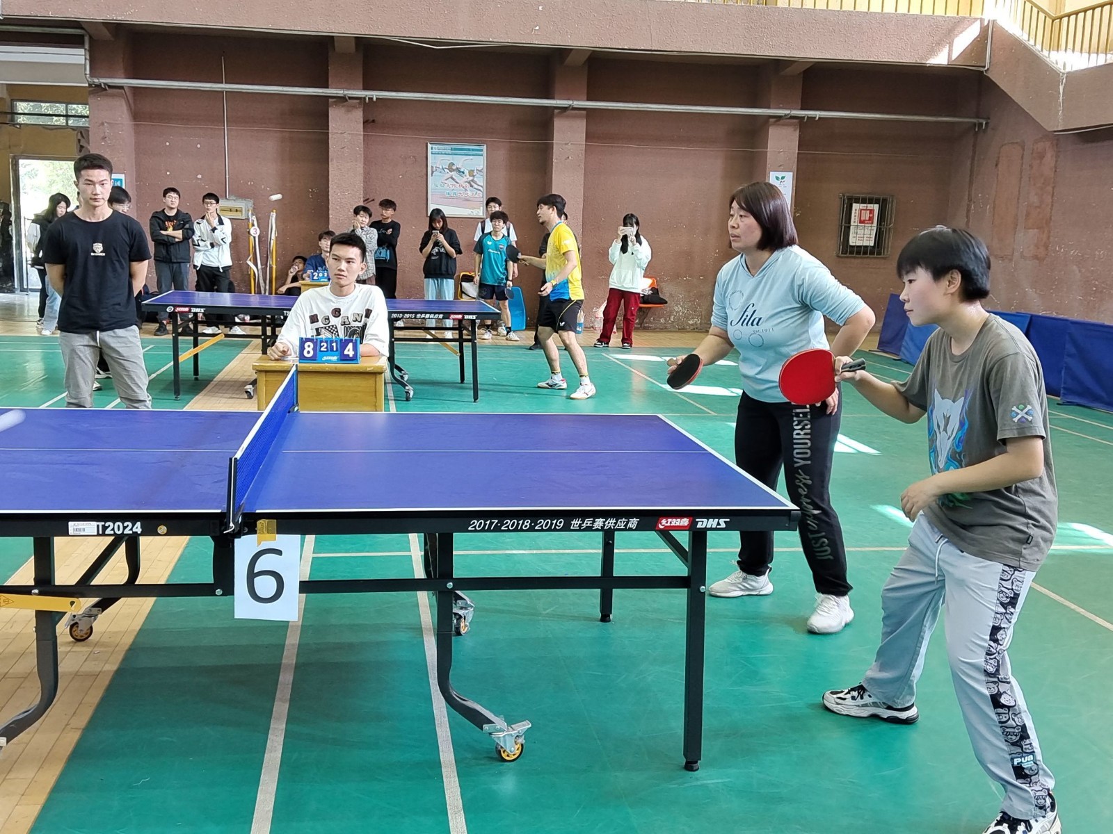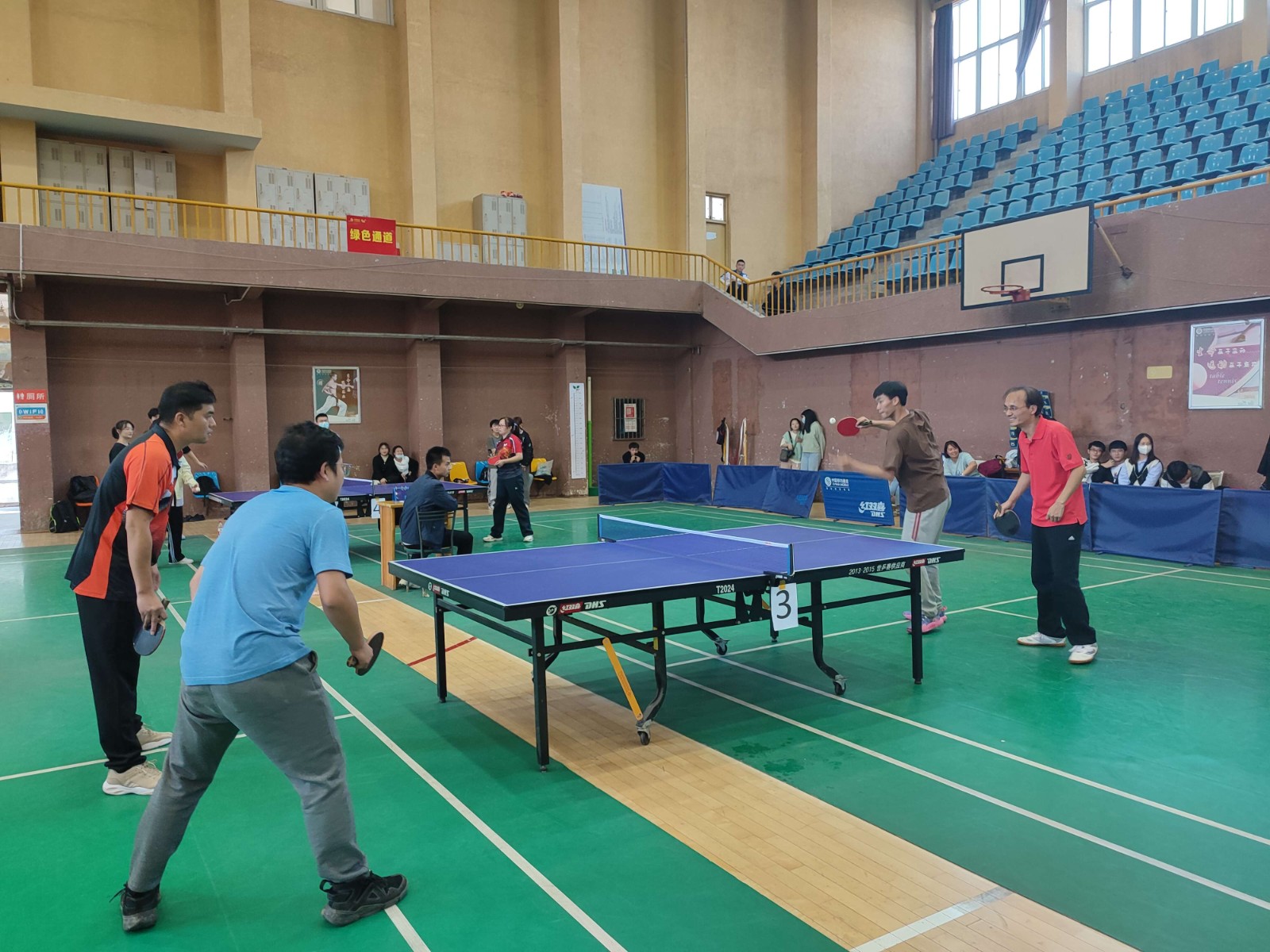 本次团体赛采用混合制,共进行五场比赛(男双、女双、男单、女单、混双),五场三胜。赛场气氛十分活跃,运动员们势均力敌,直拍,横拍,正手,反手,旋转球,弧线球各种姿势转换,单打运动员们认真专注,双打运动员们配合融洽,比赛有序展开。比赛过程中,队员之间、师生之间的默契配合是本次比赛的一大亮点。场上运动员积极投入,全力以赴,精彩场面迭出,场边的观众们也不断为他们呐喊助威,兴奋的“好球”声不断,整场比赛在激情又不失欢乐的气氛中进行。经过上午和下午的精彩角逐,经济管理学院最终勇夺第一。