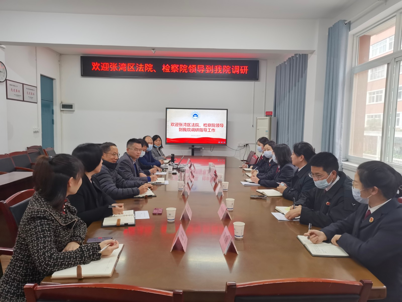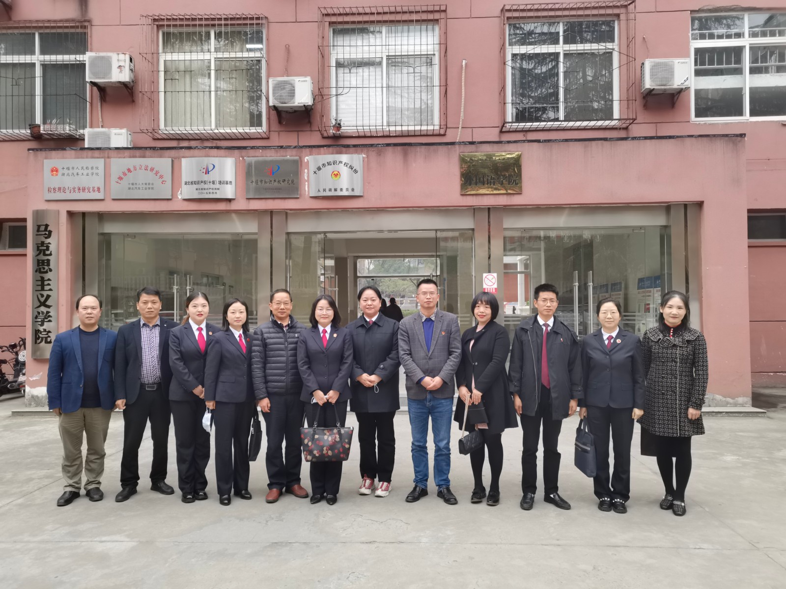 黄永昌对张湾区人民法院和检察院多年来给予学院和知识产权基地的支持表示感谢,希望双方加强在法律事务、法治建设、学生实习、课题研究的深度合作,更好的为服务辖区、服务经济社会发展作出贡献。黄慧及知识产权基地主任董文波分别就科技成果转化的现状和特色、高校知识产权转化纠纷主要表现形式进行了详细的介绍,与会教师范萌、景勤等还交流了知识产权审批过程中需要解决的相关问题。