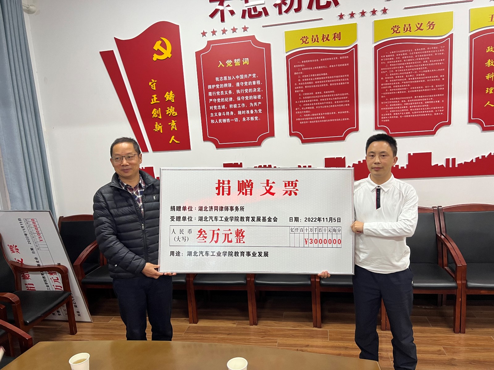 教师代表景勤博士表达了自己身为学院教师和校友双重身份的荣幸,畅谈了对母校近些年的发展变化给大家带来的惊喜与感动;校友代表律师行业协会会长胡宏武表示,自己的一技之长来源于母校,值此母校诞辰50周年之际,祝愿母校再展宏图,桃李满天下。同时,表态捐款3万元;丹江口校友分会会长孙白冰说道,他们做这件事更多的是希望学弟学妹们能够发扬汽院精神,发愤图强,接过他们的接力棒,让汽院发展得越来越好。同时,表态捐赠5万元。