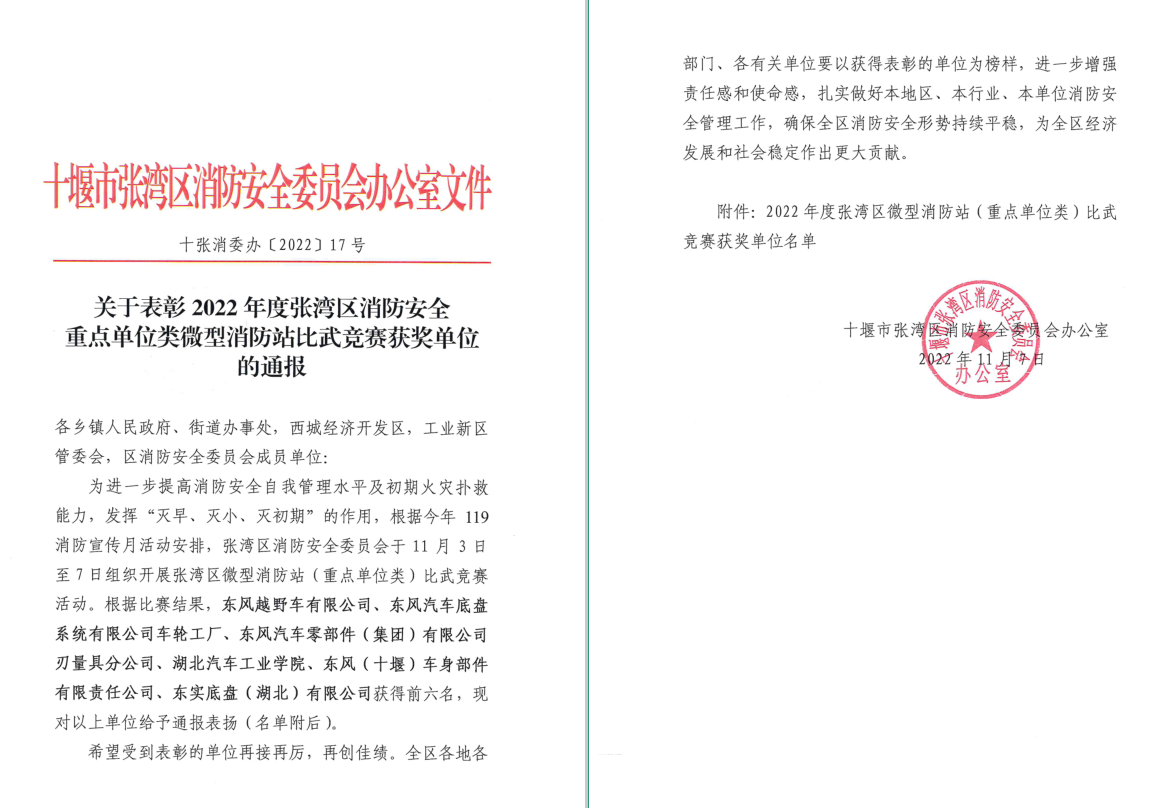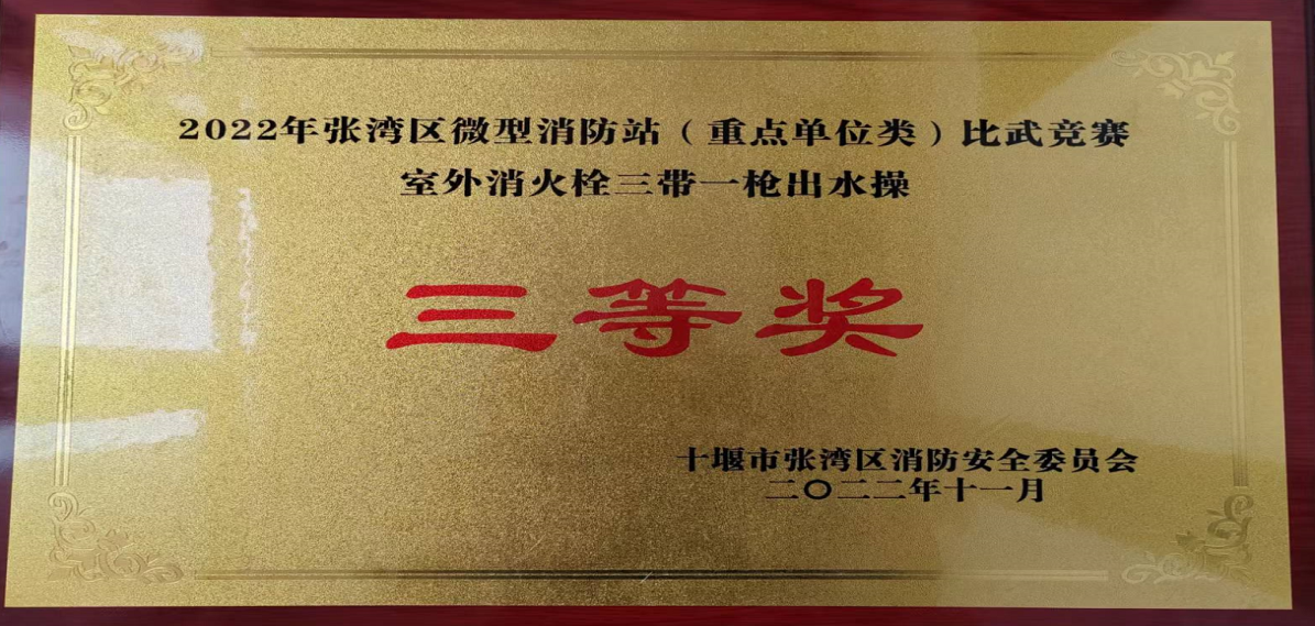 本网讯(文 官杰/图 赵伟)2022年11月beat365保卫处微型消防站队员参加十堰市张湾区消防安全重点单位微型消防站业务技能比武竞赛中荣获“三等奖”。