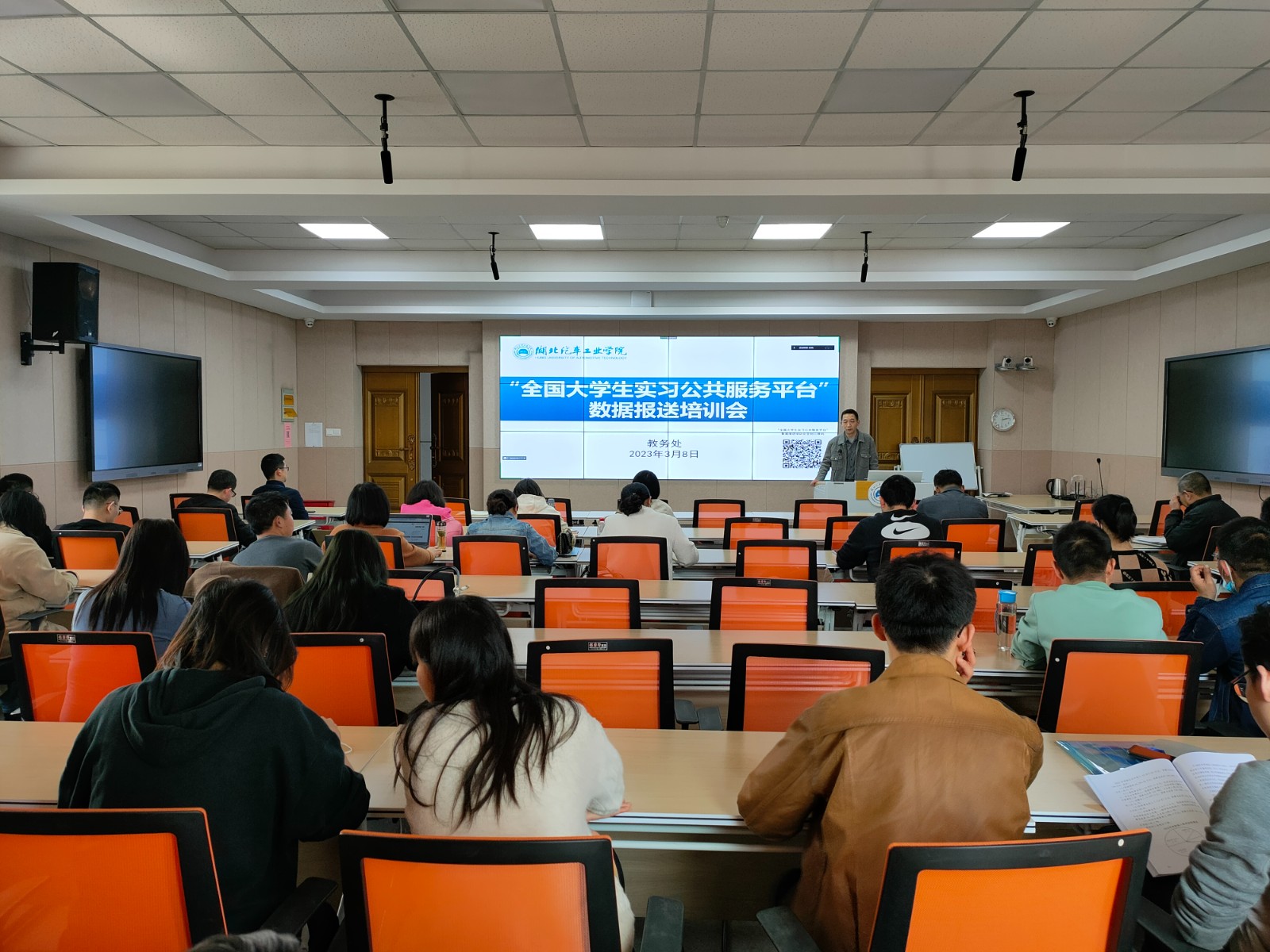 本网讯(文/李光军)根据教育部办公厅《关于做好“全国大学生实习公共服务平台”数据报送工作的通知》要求,为切实做好实习系统数据填报工作,学校于3月8日下午在教发中心1305教室举行了“全国大学生实习公共服务平台”数据报送培训会,各学院实习指导教师代表40余人线下参会,培训会线上、线下同步进行,武汉、襄阳产学研基地教师线上参会,会议由教务处副处长刘荣主持。