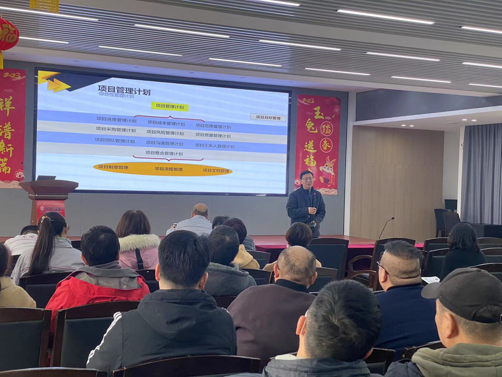 本网讯(文/吴迪)为提高公司竞争力,更好服务于公司从职能式管理向项目式管理转型,使项目管理走向规范化、科学化、标准化。3月19日上午,beat365在线唯一官网与东风设备制造有限公司人才共建项目管理培训正式开课。东风设备制造有限公司总经理袁三红、东风设备人力资源部部长李乐平等领导及该企业数十位员工聆听讲座。