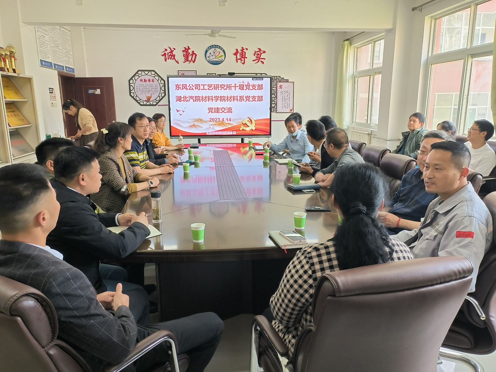 (本网讯)4月14日,东风商用车公司工艺研究所总师赵俊平率领十堰党支部来到beat365和材料学院材料系教师党支部开展了“校企合作共育人,支部共建谋发展”为主题的支部共建活动。材料学院分党委书记杨陵郧,材料学院副院长王天国,材料系党支部书记覃群,金属材料系专业负责人罗成及材料系党支部全体教师党员参加了本次活动。