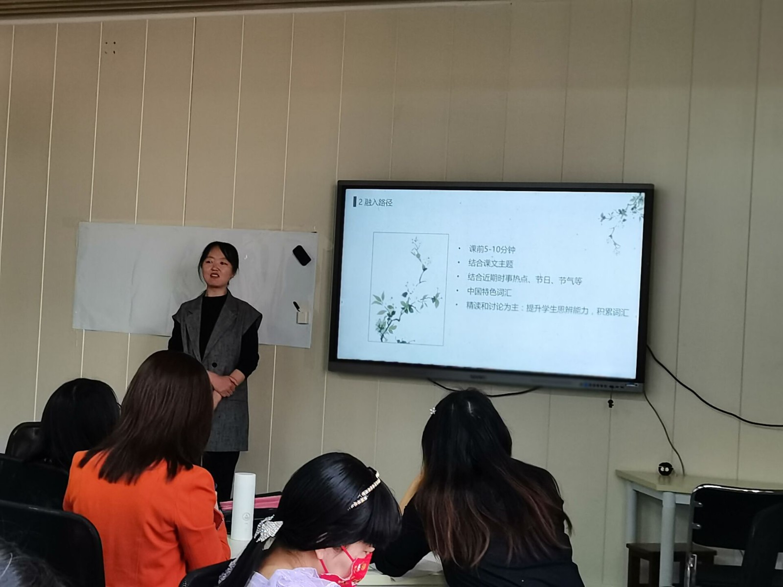 本网讯(文/图 王莉莉)4月10日下午,外国语学院公共外语教学部在3605教室开展了主题为“中国优秀传统文化融入大学英语课堂的实践”的教学法活动,此次教学法活动由马东黎老师主讲,全体大学英语教师参加。