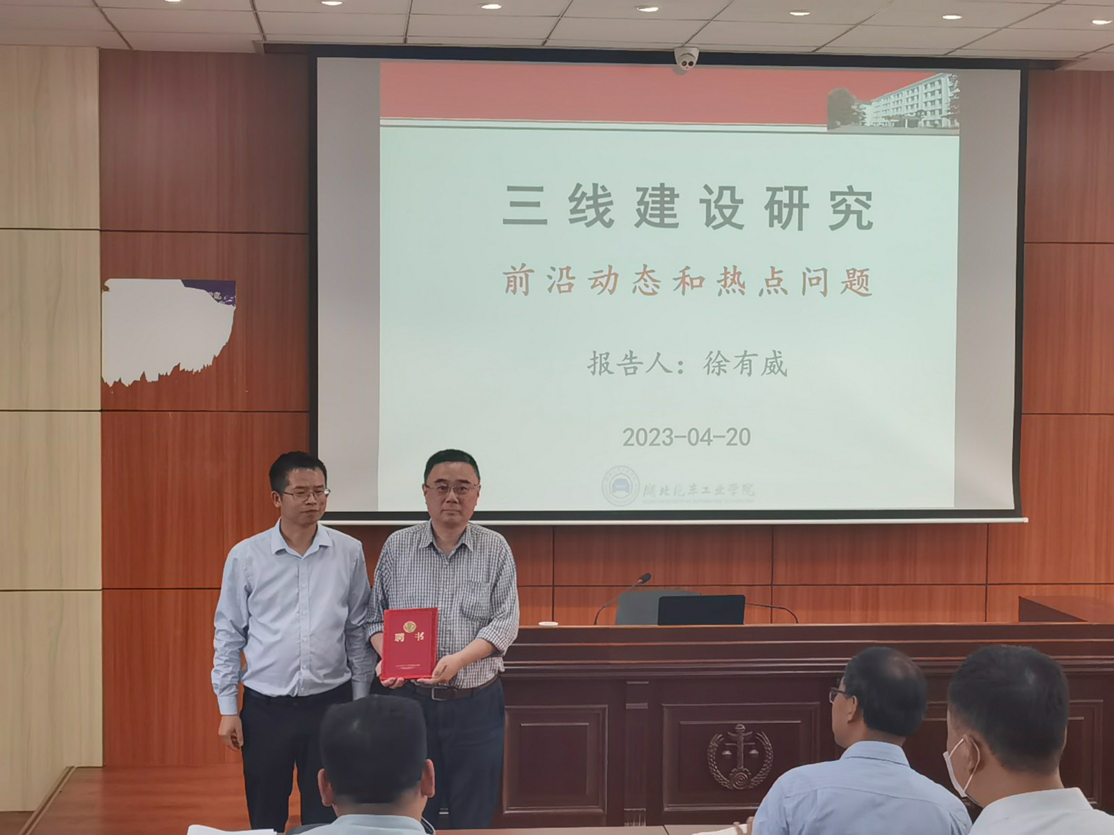 黄永昌为徐有威教授颁发了客座教授聘书。黄永昌表示,徐有威教授的报告学术性强,深入浅出,通俗易懂,具有很强的理论性和实践性。黄永昌希望青年教师找准学术切入点,抓住学术增长点,以只争朝夕的精神挖好三线建设研究这座学术“金矿”。