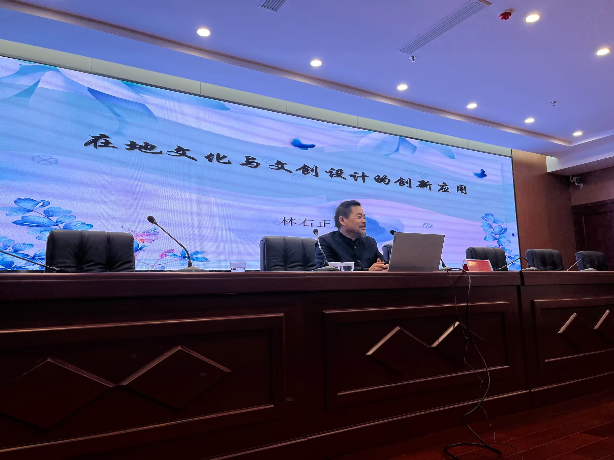 本网讯(文/罗诗棋)为提升学生艺术价值鉴赏能力,促进学生发展创新思维,提升文创设计能力水平。4月23日晚上6点,艺术与设计学院邀请著名教授、画家林右正于产教大楼三楼报告厅开展题为“在地文化与文创设计的运用”专题学术讲座。艺术与设计学院院长杨先艺、办公室主任陈梦燕、学工办辅导员罗诗棋出席讲座,艺术与设计学院设计学专业学生参加讲座。