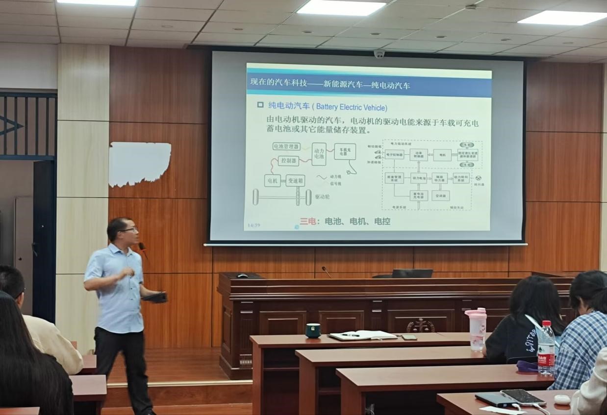 讲座上,郭一鸣从“车”字的演变引入主题,分享了汽车的由来,汽车科技的演变——过去的汽车科技、现代的汽车科技及未来的汽车科技,从指南车、机械车到电动汽车、内燃机汽车,全面系统的介绍了各个时期汽车的特点和技术革新。郭一鸣还就未来汽车科技的发展发表了自己一些独到的见解,引导同学们打开了汽车未来新世界的大门。面对同学们的一些奇思妙想,郭一鸣也给与一一解答,在互动的基础上再展开深层次的科普,尽显名师风采。