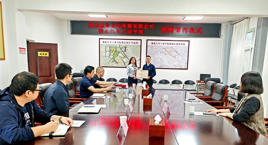 本网讯(文 刘剑鑫/图 薛树森)5月26日上午,学校行政楼三楼会议室,举办湖北愚公文化传播有限公司捐赠仪式。发展规划处、合作发展处副处长王洪涛、组织部副部长李亚洲、乡村振兴驻村工作队杨守明、刘剑鑫、谢超晋参加捐赠仪式。仪式由王洪涛主持。