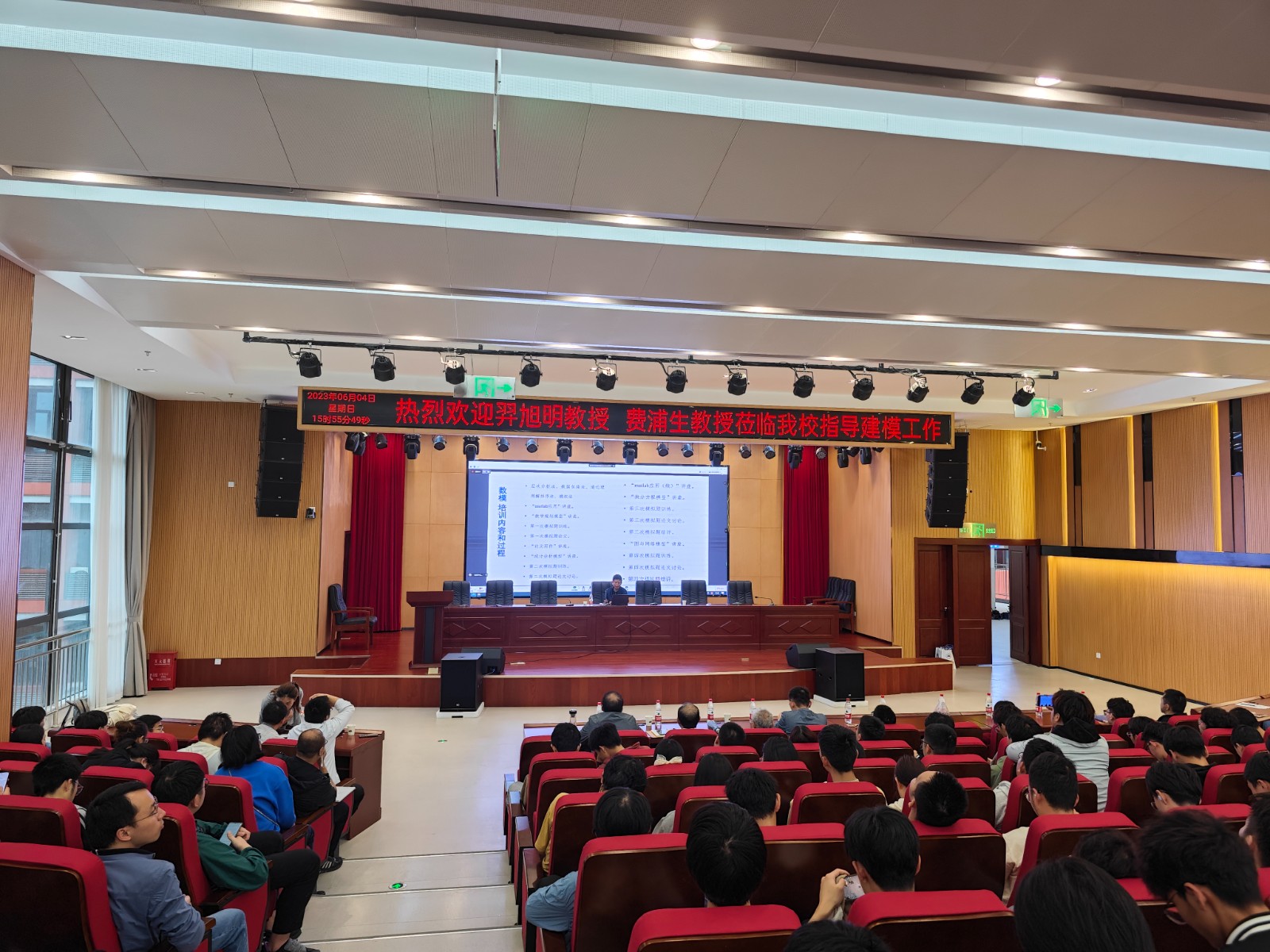 本网讯(文 吕亚楠/图 陈丹丹)6月4日,数理与光电工程学院诚邀武汉大学羿旭明教授在产教大楼四楼报告厅,面向全校师生举办了“数学建模与综合能力培养”的专题讲座。羿旭明系武汉大学数学与统计学院教授,博士生导师,现任全国大学数学建模竞赛湖北赛区专家组组长。本次讲座由数理与光电工程学院副院长胡政发教授主持,创新创业教育学院陶伟院长、数理与光电工程学院李建院长陪同武汉大学退休资深教授费浦生参加了此次报告会。数理与光电工程学院全体教师、学生代表、建模团队学生以及广大建模爱好者来到现场认真聆听了专题讲座。