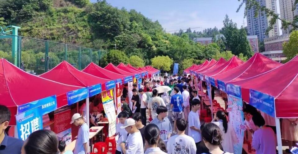 本网讯(文/金涛)6月9上午,学校在汽车文化广场举办2023年“才聚荆楚·百县进百校”就业促进专项行动暨“才聚十堰 就在车城”beat365在线唯一官网大学生留堰专场招聘会。