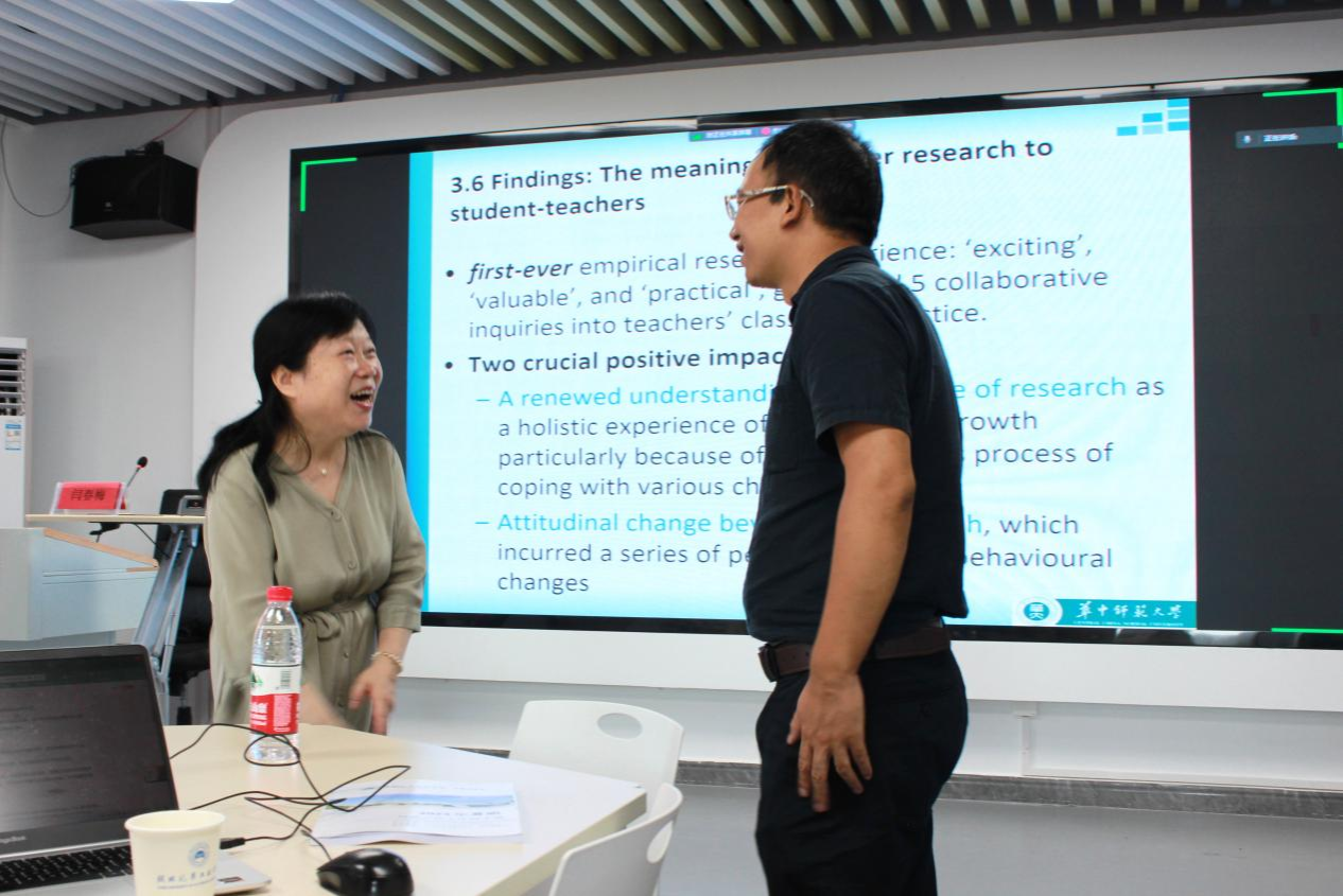 期间,外国语学院广大教师先后聆听了三场专家专题报告:英国华威大学文化与传播学博士韩瑜主讲的“质性研究方法与软件实操”;英国爱丁堡大学教育学博士、华中师范大学外国语学院英语系教授、博士生导师、外国语学院外语教师教育研究中心主任、“荆楚名师”专家委员会委员闫春梅教授主讲的“行动研究理念与研究设计实操”以及华中科技大学教授、博士生导师、Frontiers in Psychology 国际 SSCI 二区期刊客座主编彭仁忠教授主讲的“问卷设计方法与设计实操”。