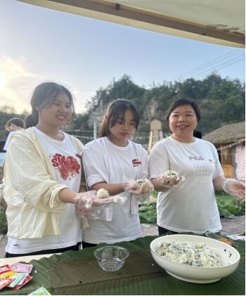 期间,习惯了平日在校园生活中饭来张口的同学们,走进农家菜园、下到农家厨房,或开展除草,或进行采摘,或下厨烹饪。“戴上手套,铺上海苔,将米饭搅拌散热后置于掌心,微微压平,然后加上肉松、火腿、生菜等配料,再卷起来,一个美味、精致的饭团就制作完成啦!”在学院分党委书记崔海英的指导下,同学们既品尝到了自己的劳动果实,也感受到了一米一粟来之不易。“美好生活是奋斗出来的。我们要用心上好劳动教育这门必修课,要弘扬‘自找苦吃’精神,让学生真正成为劳动教育的受教者、受益者,劳动精神的弘扬者、引领者。”崔海英说道。