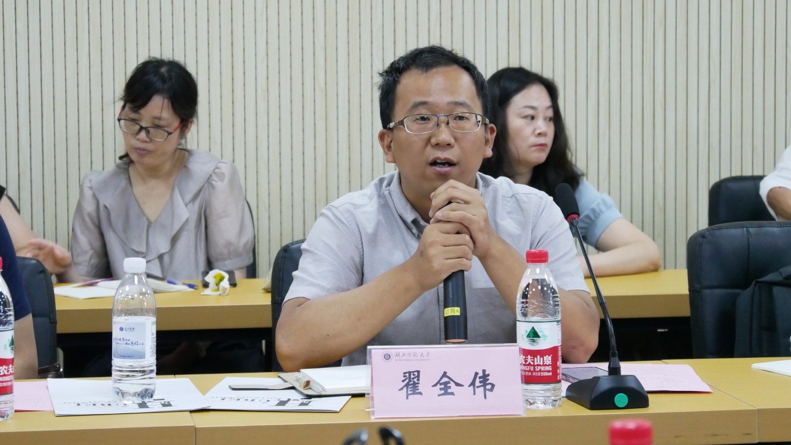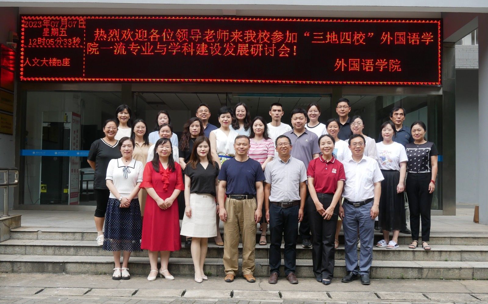 本网讯(文/图 贺莹莹)7月7日上午,“三地四校”外国语学院一流专业与学科建设发展研讨会在湖北师范大学外国语学院召开,本次研讨会由湖北师范大学外国语学院、湖北师范大学英国研究中心和湖北师范大学勤敏课程思政刘敏工作室主办,与会单位有荆楚理工学院、湖北理工学院和beat365在线唯一官网。beat365外国语学院副院长翟全伟、国别与区域研究中心筹备组主任高子娟、筹备组组员贺莹莹、实验室主任陈小勋参加会议。