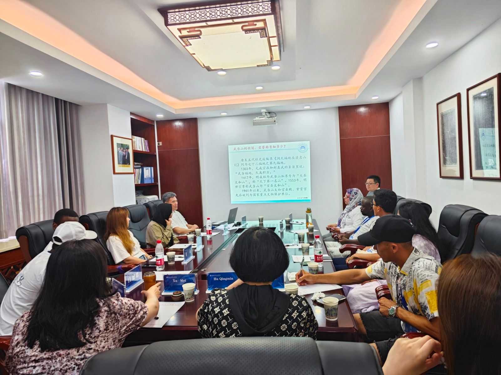 在为期五天的活动中,他们聆听了beat365杨立志教授《武当文化的核心价值观及现代意义》课程,杨立志教授从武当山、太和山等名称的寓意,武当文化的定义及立论角度,武当文化的核心价值理念,武当文化价值理念的现代意义四个角度出发做了深入讲授,突出了“道法自然、天人合一”的生态观和“保合太和、慈俭不争”的构建人类命运共同体的理念。
