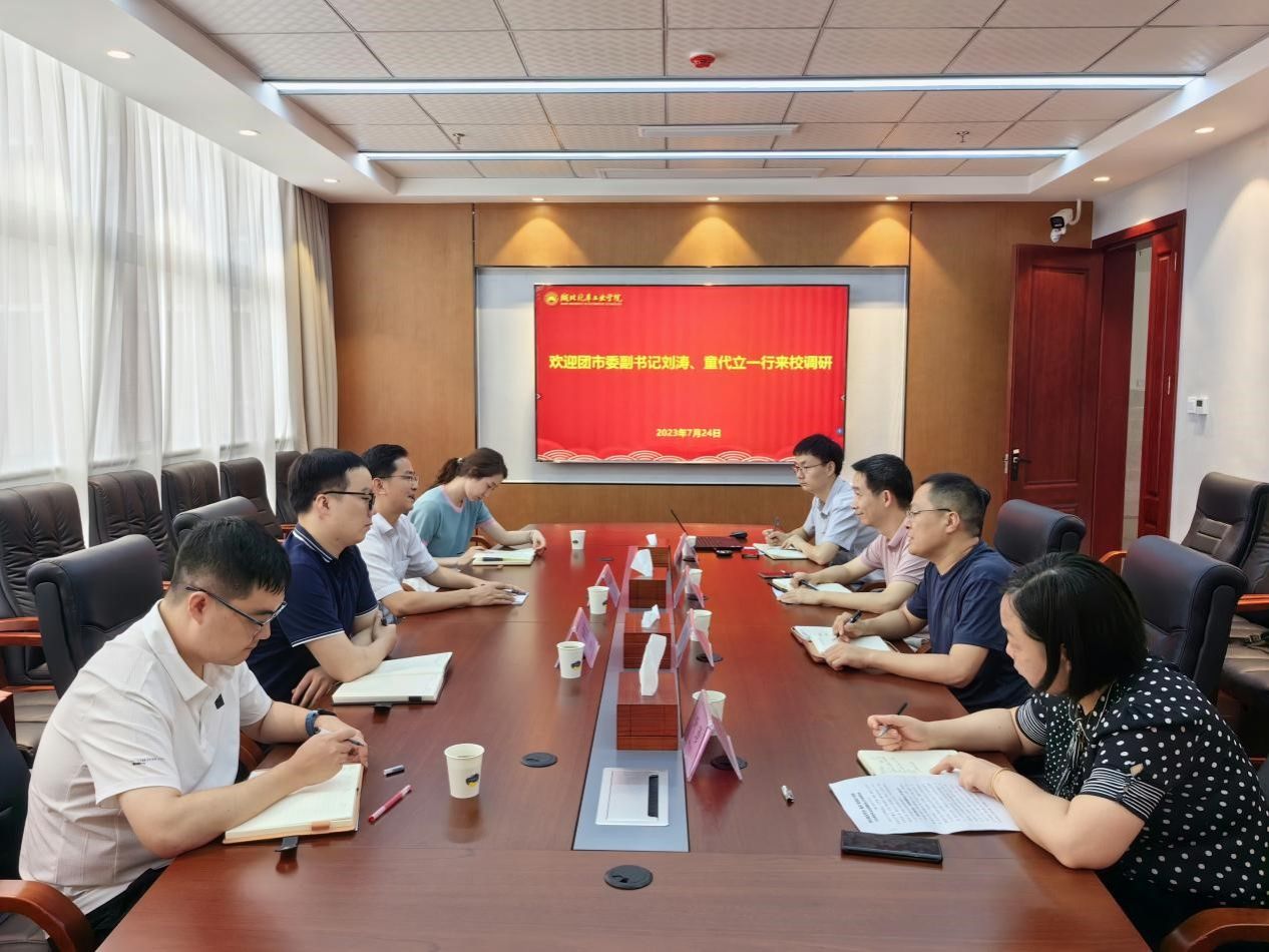 本网讯(文/图 金涛)7月24日下午,共青团十堰市委副书记刘涛、童代立一行四人来校调研大学生留堰就业工作,双方在产教大楼312会议室召开交流座谈会。校团委书记杜祥军、招生与就业处副处长刘荣参加座谈会。