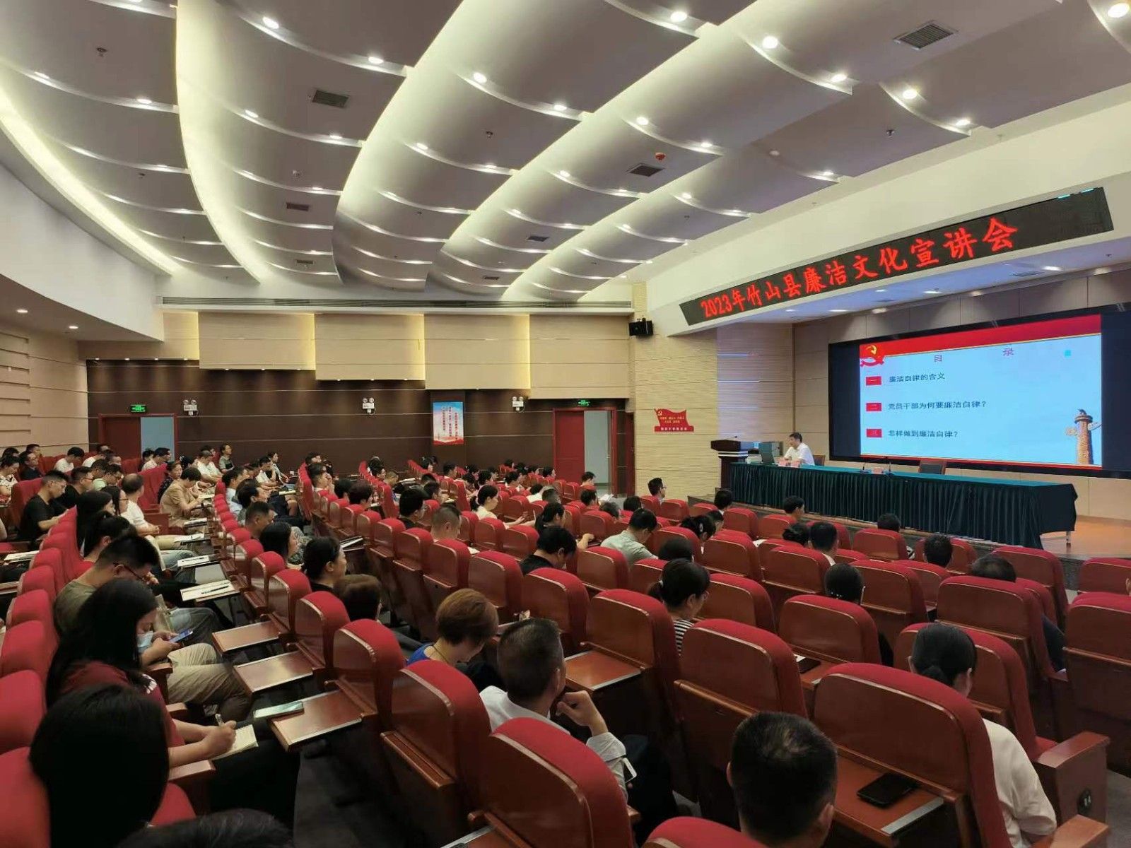 在竹山县新时代文明实践中心会场,beat365在线唯一官网马克思主义学院分党委书记、教授计毅波以《争做新时代廉洁自律的表率——谈党员干部的廉洁自律》为题,形象生动地阐释了新时代廉洁文化的丰富内涵、推进廉洁文化建设的方法路径。