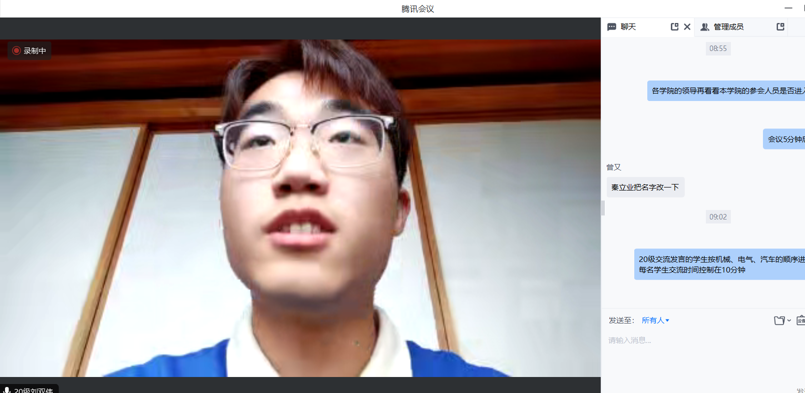 2020级访学归来的谢聪和刘双伟同学分别做了经验交流,他们从如何快速适应大学生活、合理规划学习目标等方面进行了分享交流,鼓励学弟学妹们要珍惜难得的求学机会,努力学习,快速融入到新的团体,积极参加学校的各类活动,实现自己的人生理想。针对2023级访学新生提出的团组织关系、报到等问题,师生进行了交流。