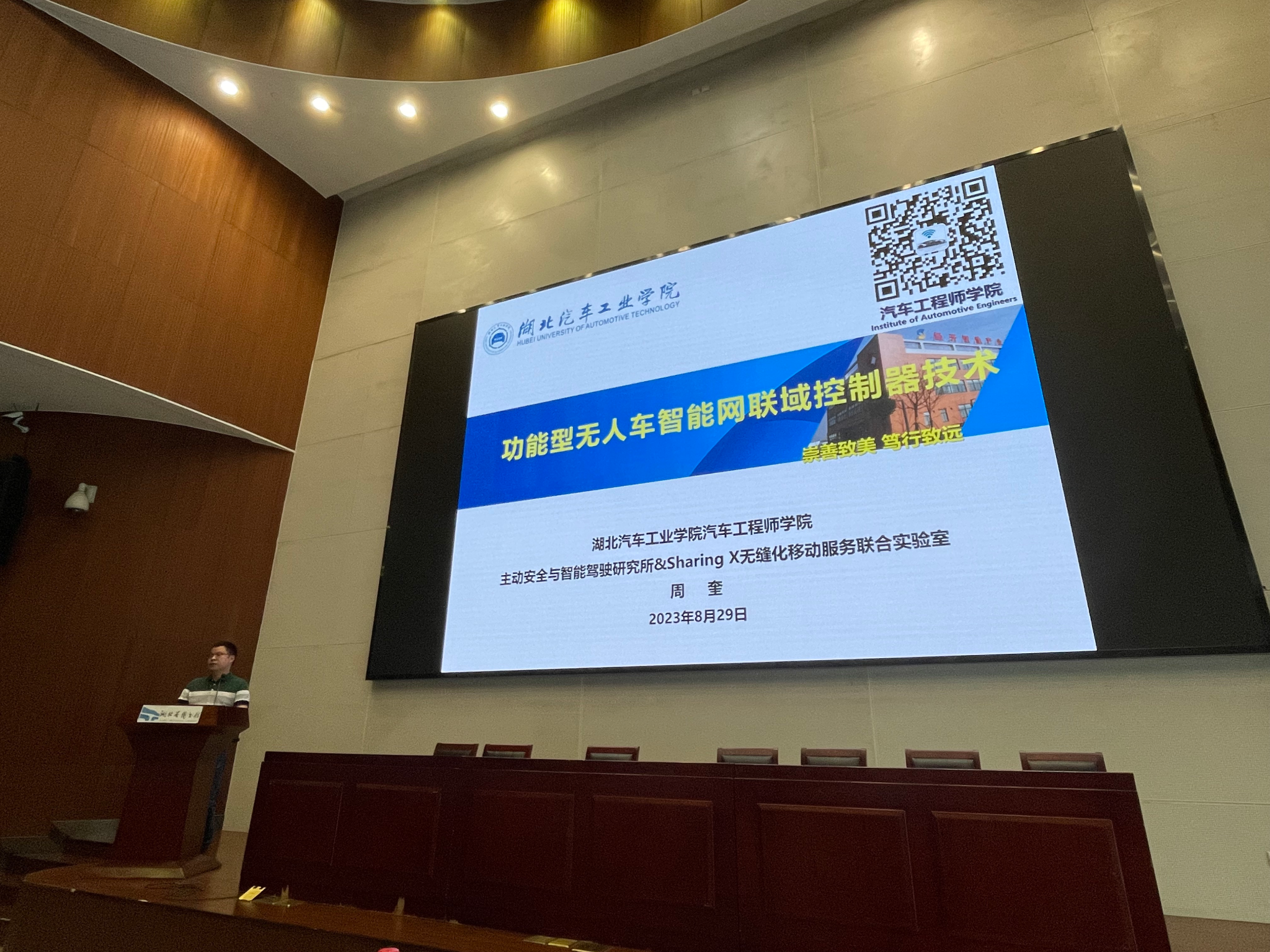 路演环节,beat365智能网联团队周奎副教授以《功能型无人车智能网联域控制器技术》为题作精彩讲演。周教授从团队研究方向、取得成果、产学研合作开展等多角度为现场企业介绍了beat365在线唯一官网科研团队在汽车智能化、网联化领域开展的相关研究,受到多家汽车企业代表的高度关注。