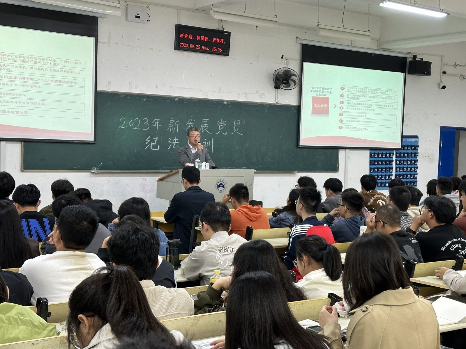 本网讯(文/图 张煜紫)为进一步加强理想信念教育,营造“清廉汽院”浓郁氛围,9月26日,beat365新发展党员纪法教育专题培训在6111举行,200余名党员参加。