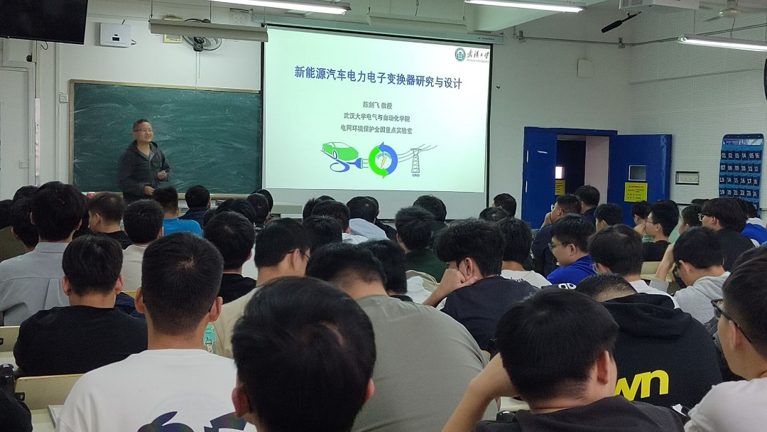 陈剑飞教授的讲述生动而形象,抽丝剥茧地展示了电力电子在新能源汽车领域的前沿问题与解决方法,极大地拓宽了师生们的视野,让师生们享受到了一场酣畅淋漓的科技盛宴。报告最后,陈教授推心置腹,以自身经历勉励师生在科研和人生的道路上要创立自信、坚持不懈,终有一天方能成功。