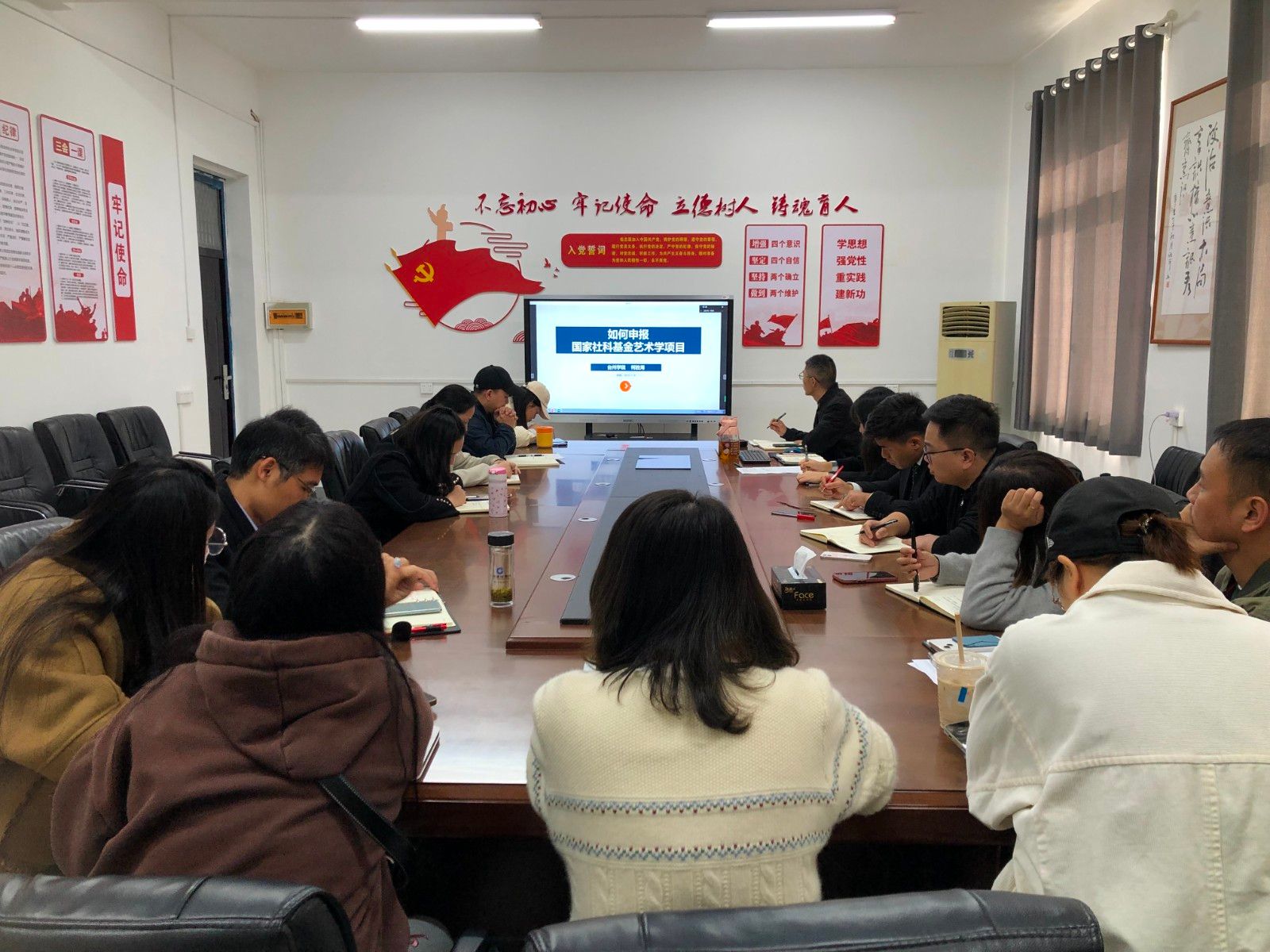 本网讯(文/图 何沛然)11月8日下午,台州学院艺术与设计学院院长柯胜海教授受邀来beat365开展《如何申报国家社科基金艺术学项目》的线上专题讲座,艺术与设计学院全体教师参加了讲座,讲座由艺术与设计学院副院长朱炜主持。