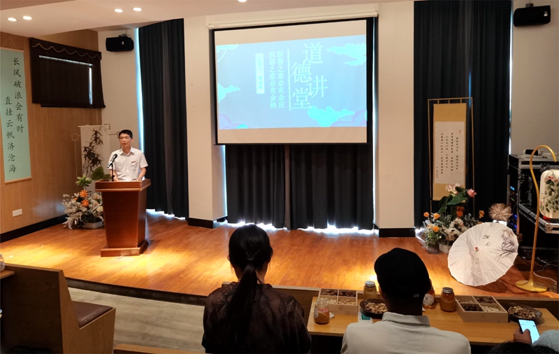 分党委书记黄进涛担任主讲嘉宾,他以政治、道德、法律三个层面为切入点,深入剖析了理想信念、道德品质、法治素养的重要性。他指出,道德教育是培育和践行社会主义核心价值观的重要途径,也是促进社会和谐稳定的关键环节。