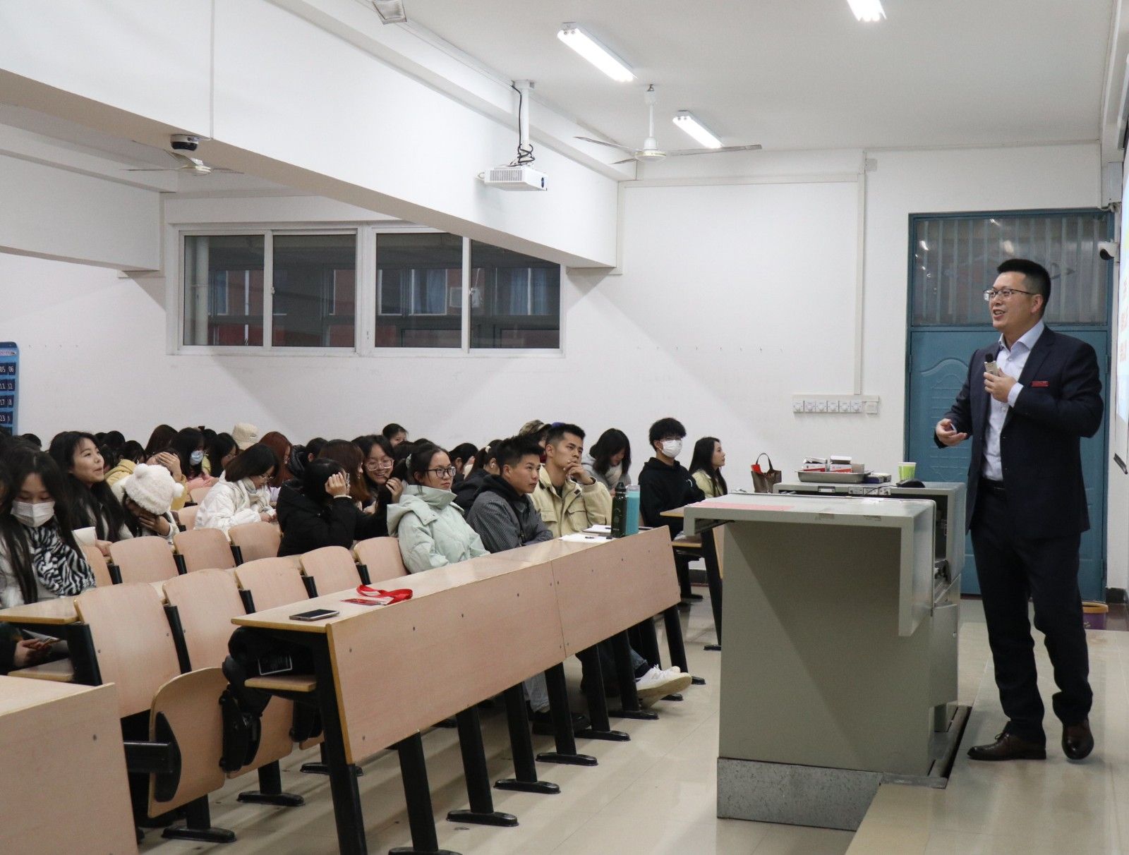 本网讯(文/赵氏璇)为提升学生的职业规划意识,帮助他们更好地树立人生目标。11月25日下午,经济管理学院邀请工商管理专业99级优秀校友赖晓松(现任武汉优进管理有限公司董事长)为我院22级营销、财务、物流专业学生做优秀校友事迹报告会,本次分享会由学工办卓安翼老师主持。