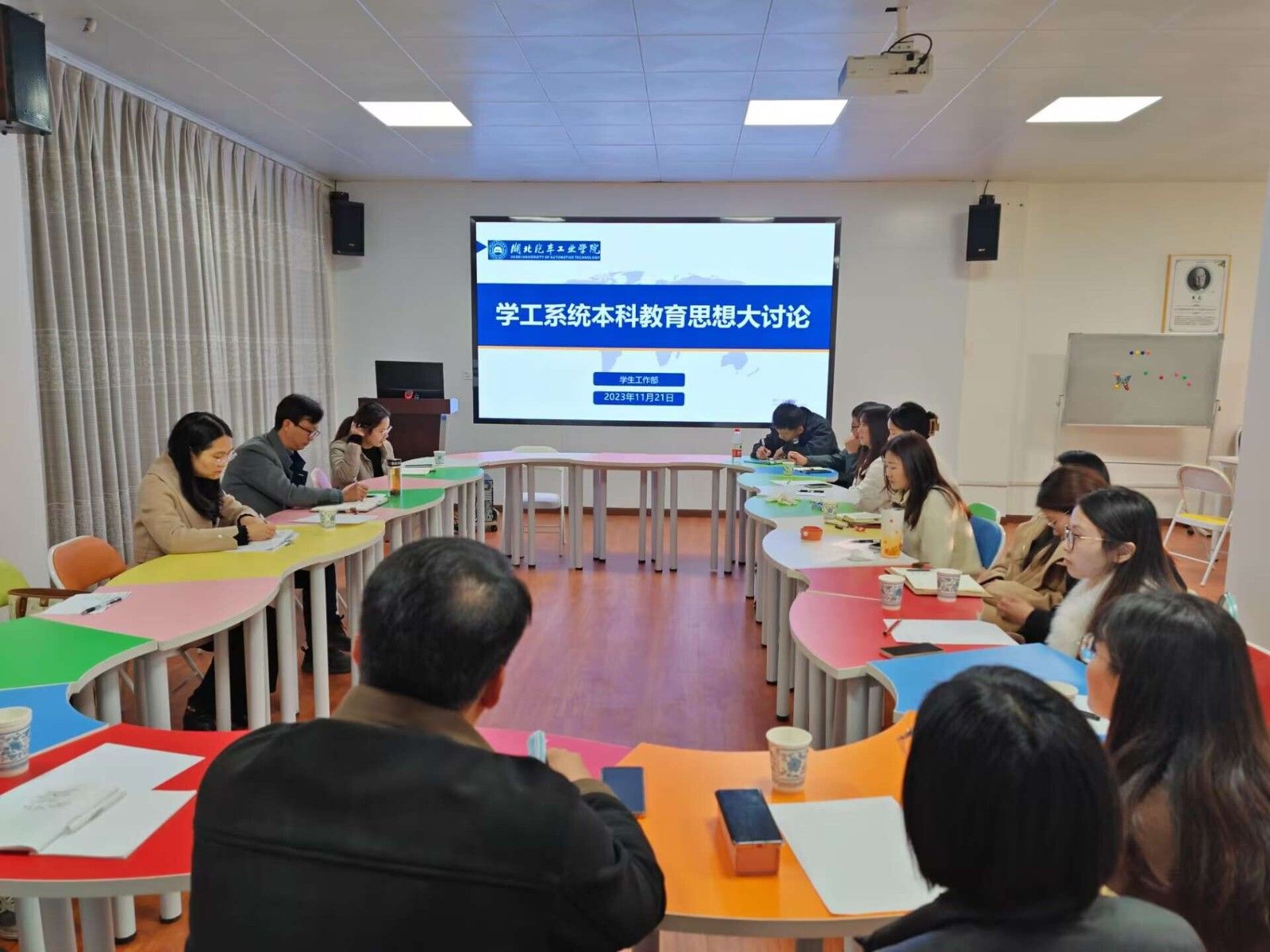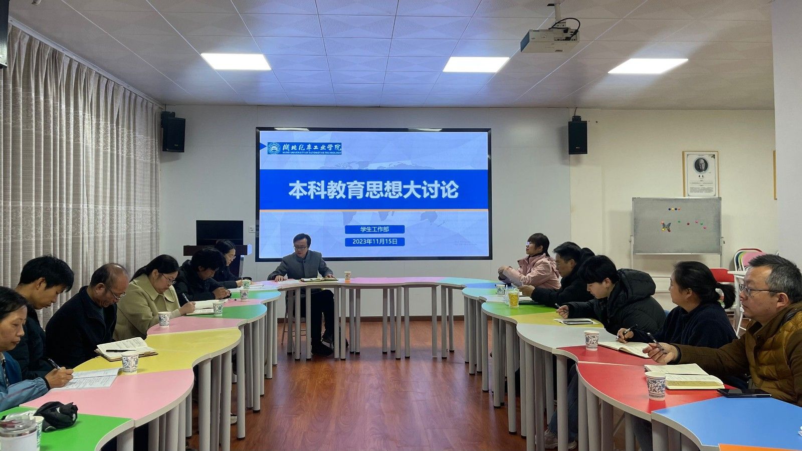本网讯(文/图 晏冉)为进一步凝聚共识,谋划有“汽院特色”的本科教育高质量发展的建设路径,助力学校“立德树人 以生为本 以质立校 建设新时代高质量本科教育”为主题的本科教育思想大讨论,学工部积极部署相关工作有序推进各项研讨工作。