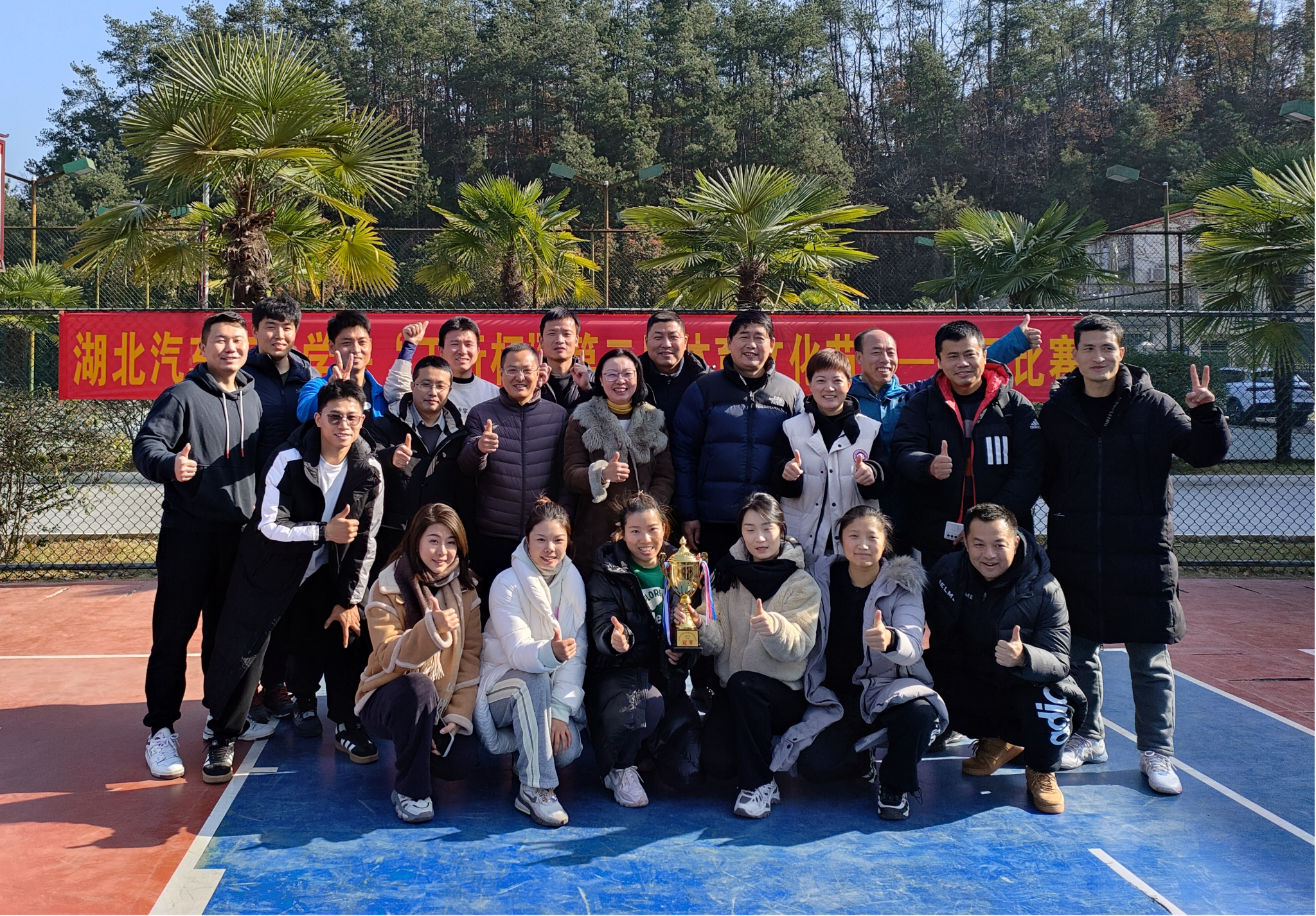 最终,科技学院、体育部代表队凭借出色的团队配合和实力优势分别赢得学生组和教工组冠军。校团委书记杜祥军、工会主席宋涛依次为获奖单位颁发奖杯。