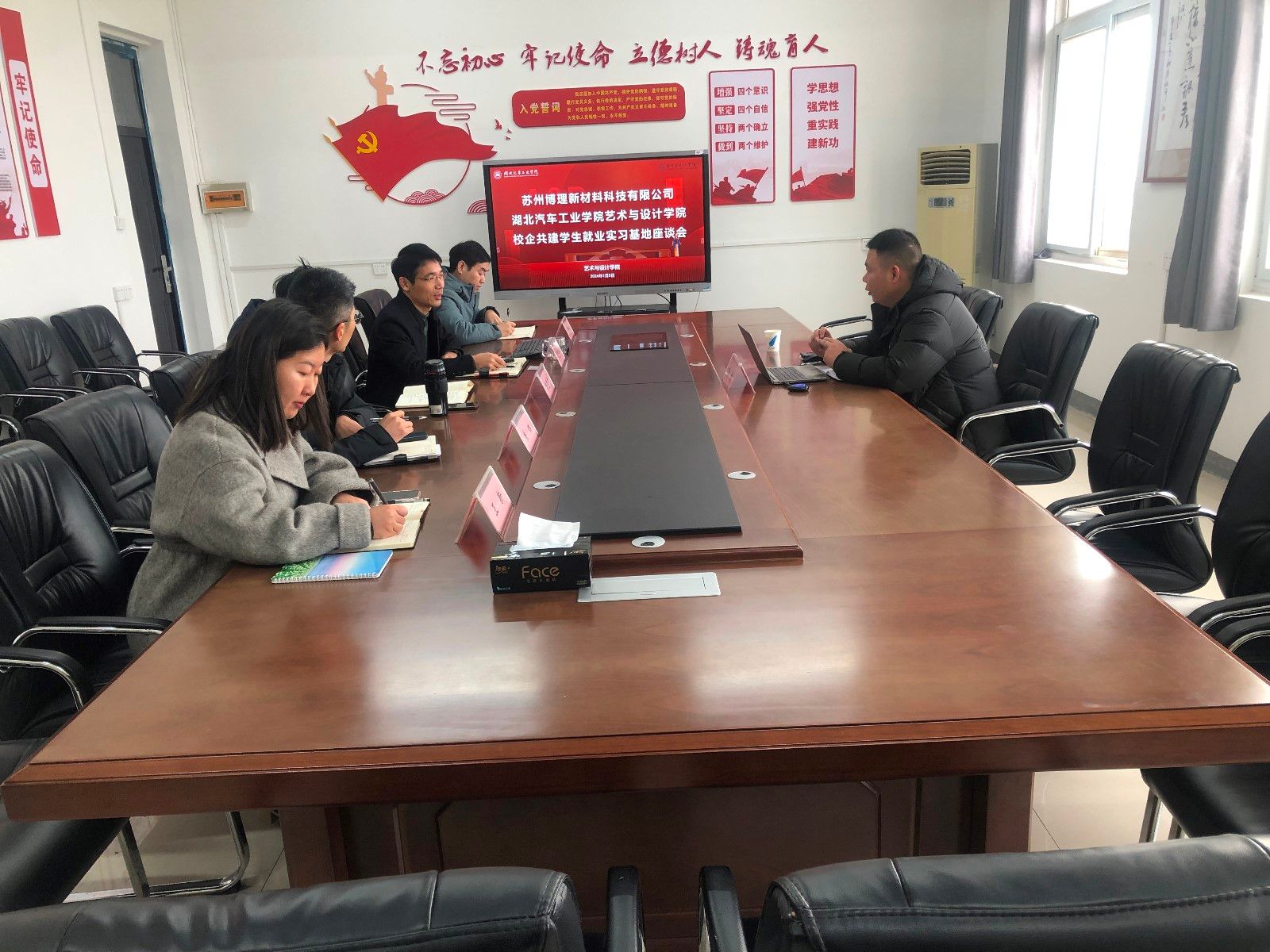 本网讯(文 王新/图 陈梦燕 )1月5日,艺术与设计学院与苏州博理新材料科技有限公司校企共建学生就业实习基地座谈会在1419会议室举行。