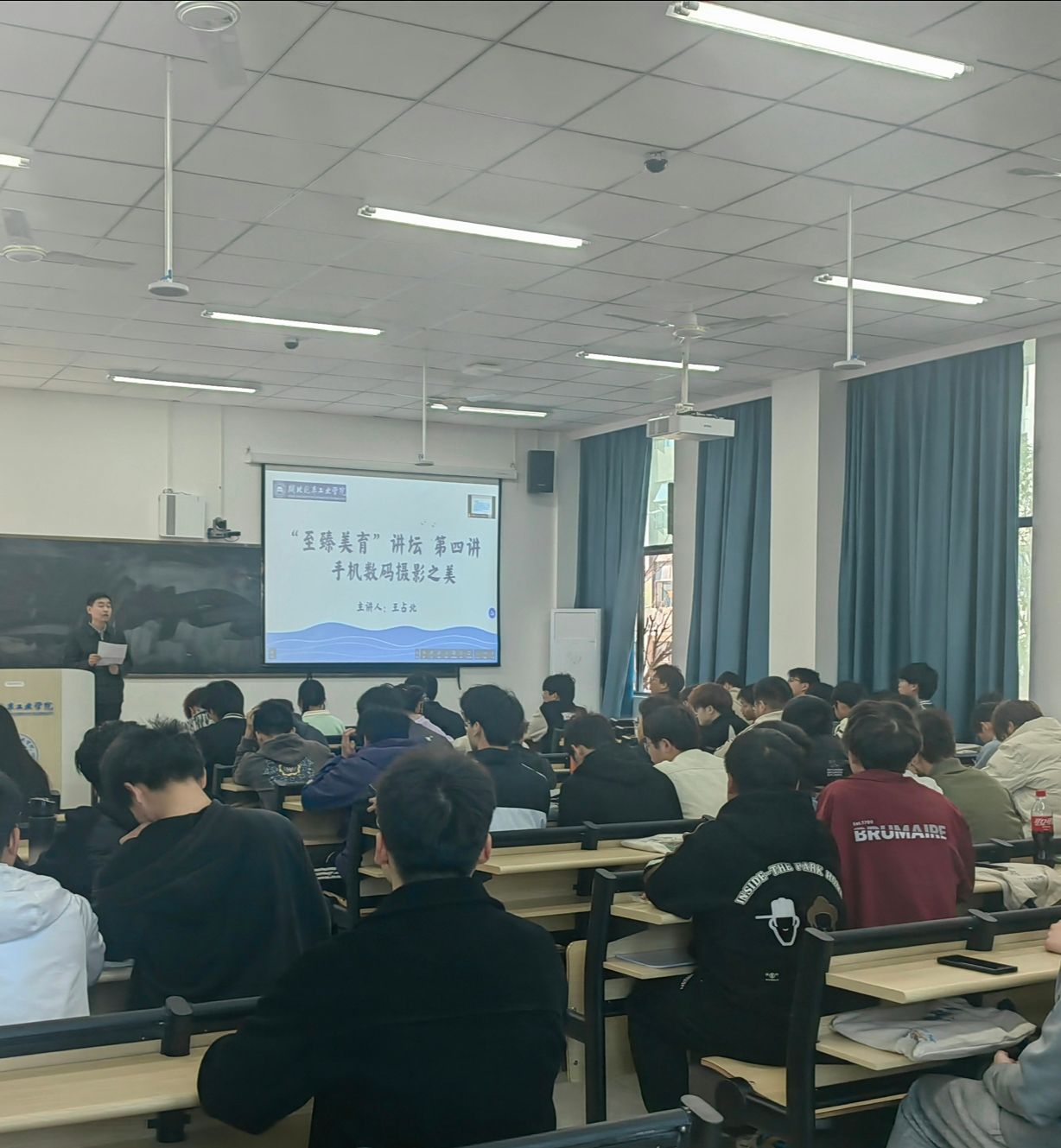 本网讯(文/图 董惶惶)3月22日,备受期待的“至臻美育”讲坛第四讲如期举行。本次讲坛特邀嘉宾王占北教授,以“手机数码摄影之美”为主题,为现场观众及线上300余名师生带来了一场精彩绝伦的讲座。艺术与设计学院副院长龚青山、美育研究中心办公室主任董煌煌现场参加讲座。
