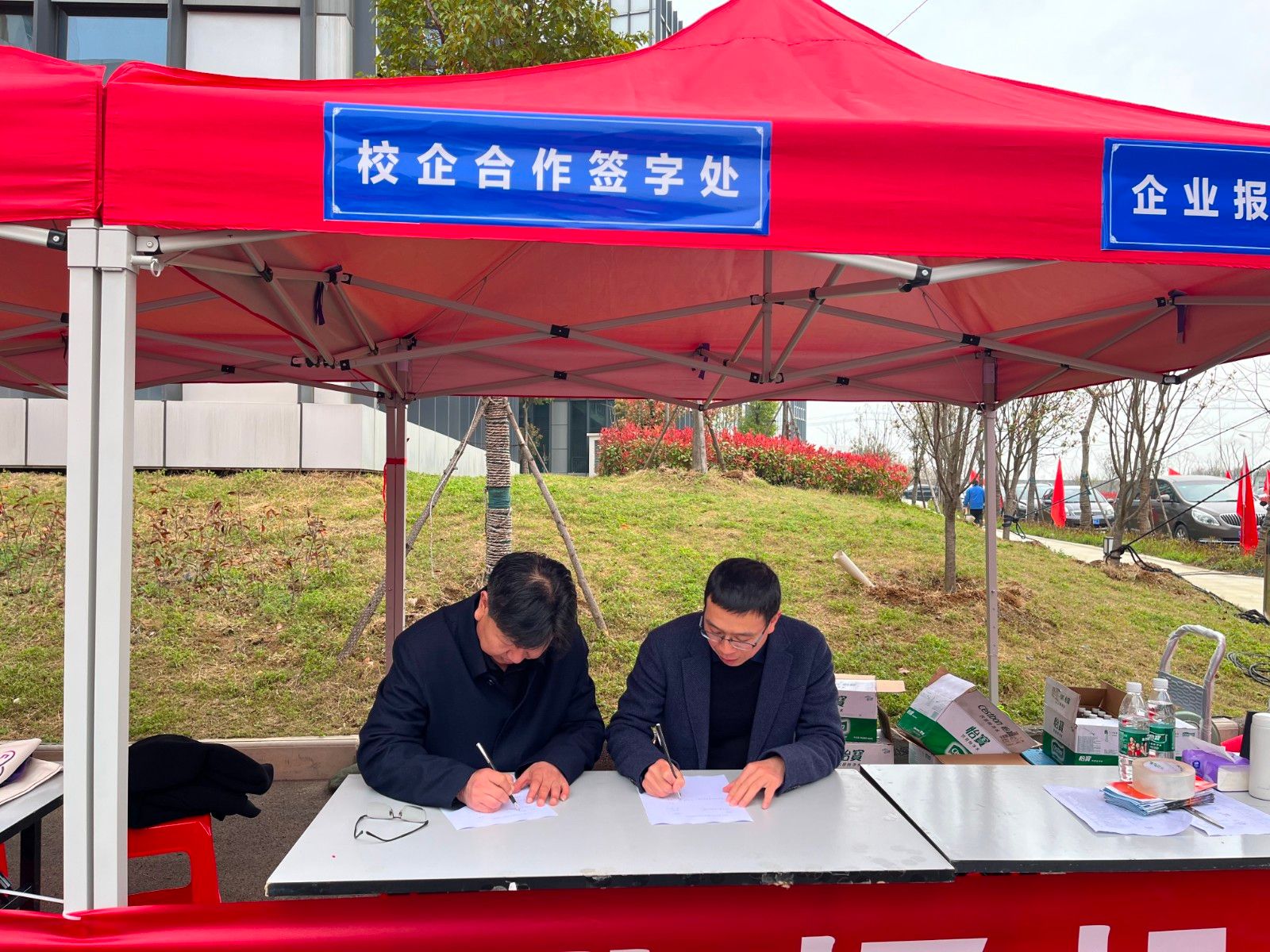 据悉,活动现场同步开展项目合作洽谈,基地主任汤德强代表基地与湖北宇扬智能装备科技有限公司、襄阳市银森车厢制造有限公司等两家企业负责人签约产学研合作项目。