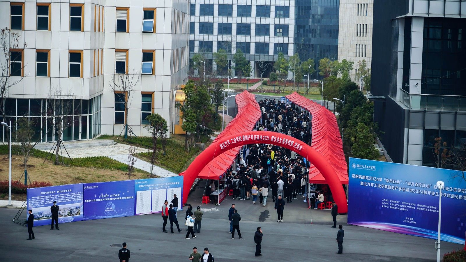 襄阳高新区管委会副主任李新伟、襄阳高新区党群工作部副部长李炜、襄阳高新区创业服务中心主任翟朋飞、襄阳高新区人力与社会保障中心副主任王国号、就业科科长马胜利、襄阳产学研基地主任汤德强、副主任赵新军、副书记余厚德亲临现场,了解学生求职情况和用人单位招聘需求。