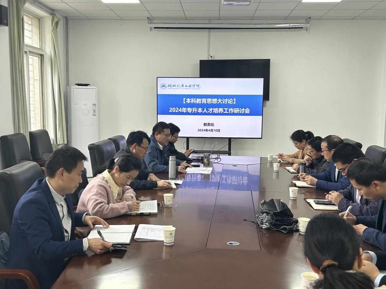 本网讯(文/梁姗姗)为贯彻落实全国教育大会、新时代全国高等学校本科教育工作会议精神,全面贯彻党的教育方针,落实立德树人根本任务,切实提升专升本人才培养质量,4月10日下午,学校在一教1204会议室召开2024年专升本人才培养工作研讨会。各二级学院教学副院长、教务处相关人员参加会议。