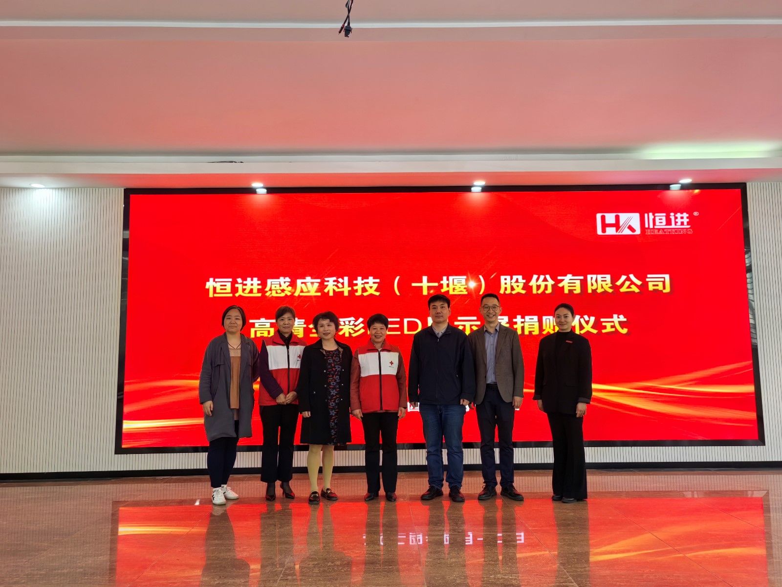 最后,恒进感应科技(十堰)股份有限公司副总经理曹磊、茅箭区红十字会会长王君丽,副会长张红,招生与就业处副处长刘荣,共同为捐赠大屏揭幕。(审稿 刘荣)