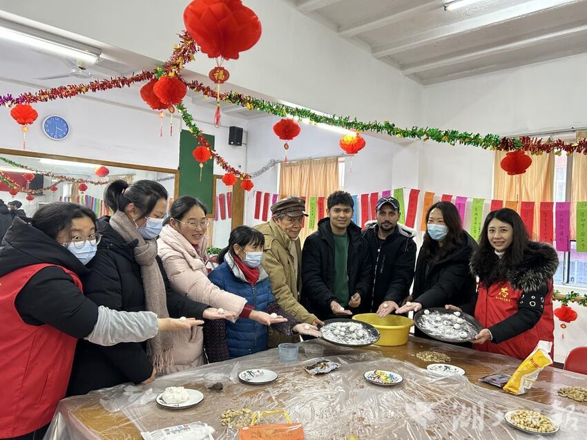 为弘扬传统文化,共创幸福生活,在元宵佳节来临之际,2月20日下午,市、区共同缔造工作组和十堰市张湾区红卫街道周家沟社区新时代文明实践站邀请汽院留学生、辖区独居老人、居民和小朋友们在beat365在线唯一官网退休办开展“弘扬传统文化 共庆元宵佳节”美好生活共同缔造活动。