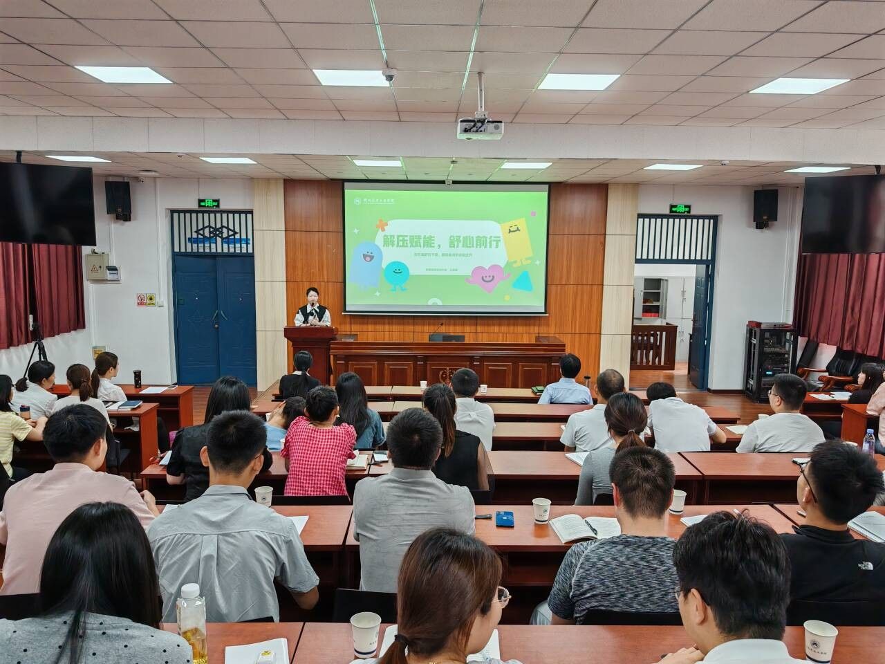 本网讯(文 丁小芳/图 黄聪悰)为了提升beat365辅导员心理健康水平,进一步加强对辅导员队伍的心理关怀,帮助辅导员释放压力,倡导积极健康的生活理念,5月31日,学工部大学生心理健康教育中心在3325教室组织“解压赋能,舒心前行”主题团体心理辅导活动。活动由心理健康教育中心教师王嘉丽带领,学工部部长王关锋、副部长杜昕俊以及来自各个学院的60余名辅导员参加了此次活动。