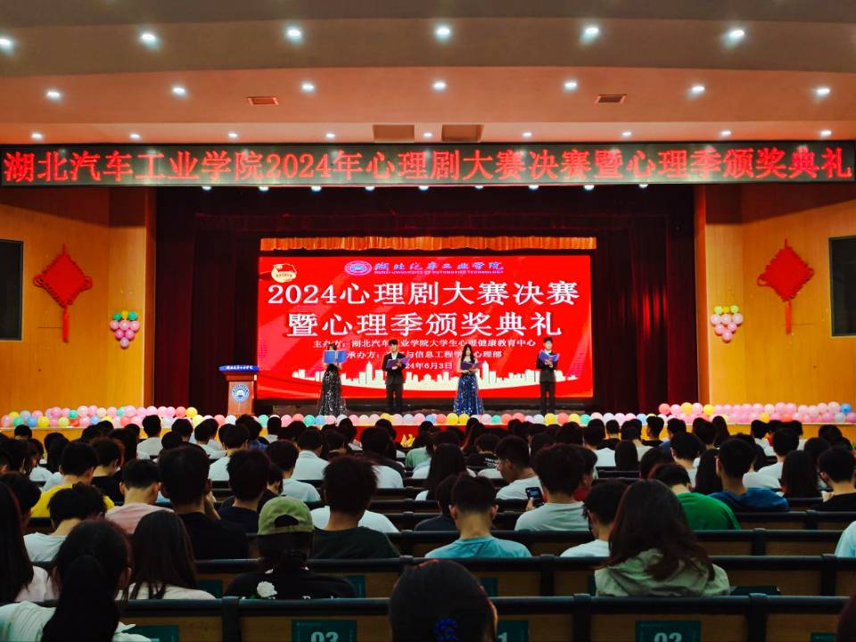 本网讯(文 余婧靓/图 余汉鑫)6月3日下午,由学工部主办、电气与信息工程学院承办的“心声共鸣,剧绘人生”第六届心理剧大赛决赛暨心理季颁奖典礼在大礼堂隆重举行。学工部副部长杜盺俊,电信学院分党委副书记曾又,心理健康教育中心教师、各二级学院心理辅导员及400余名学生参加活动。
